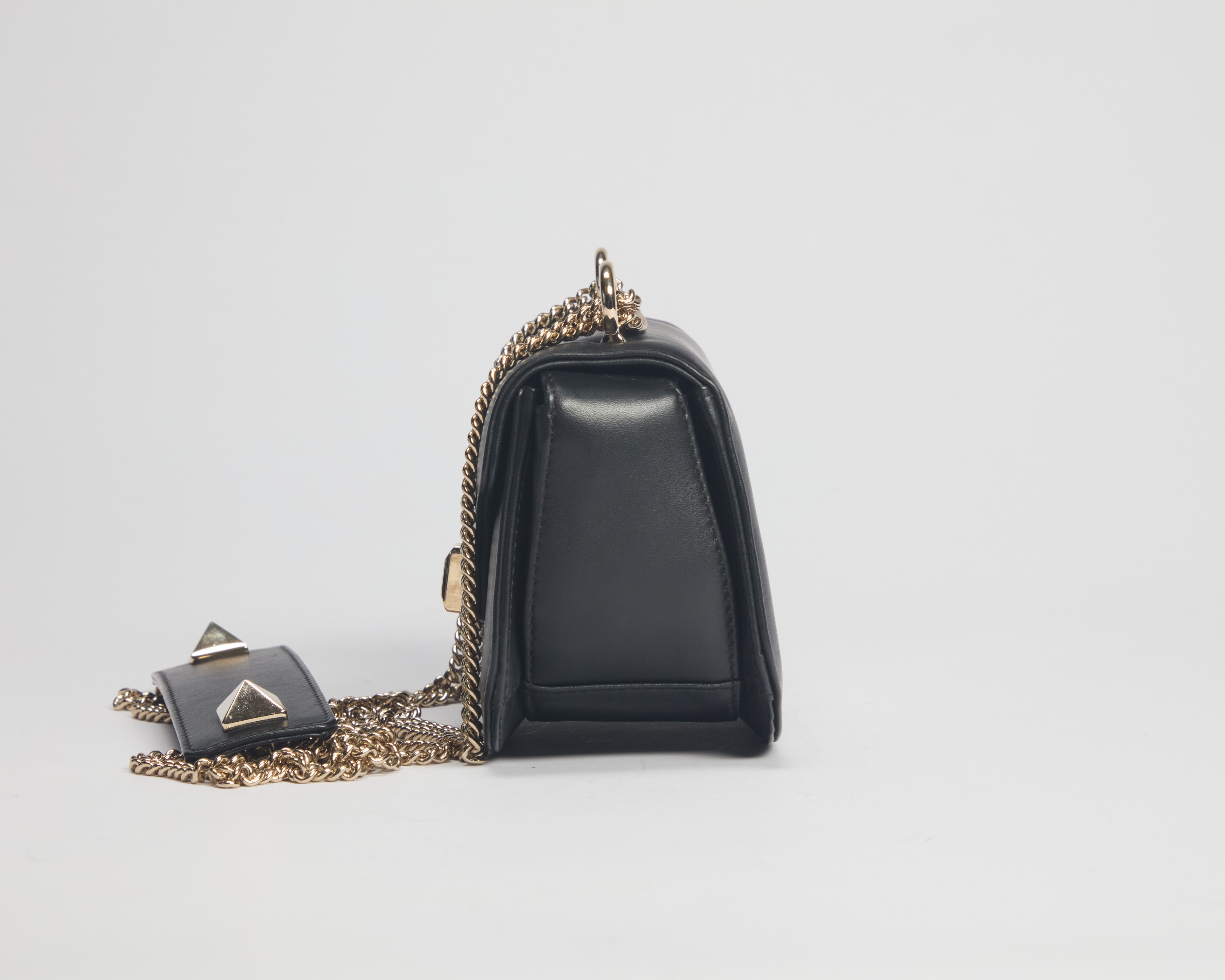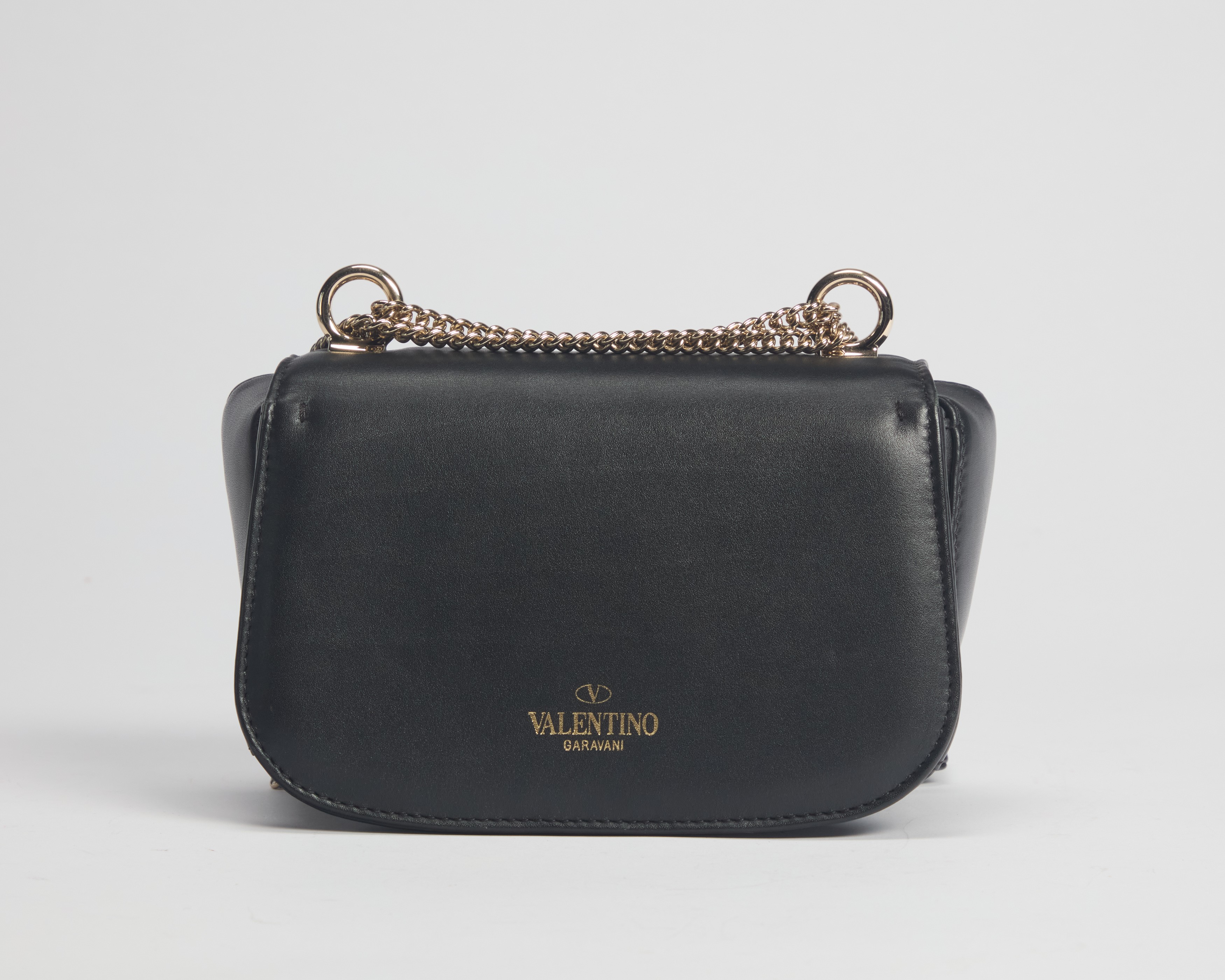Black leather VLTN Mini, with white VLTN lettering, cm 17 (slight defects), (new and never used)