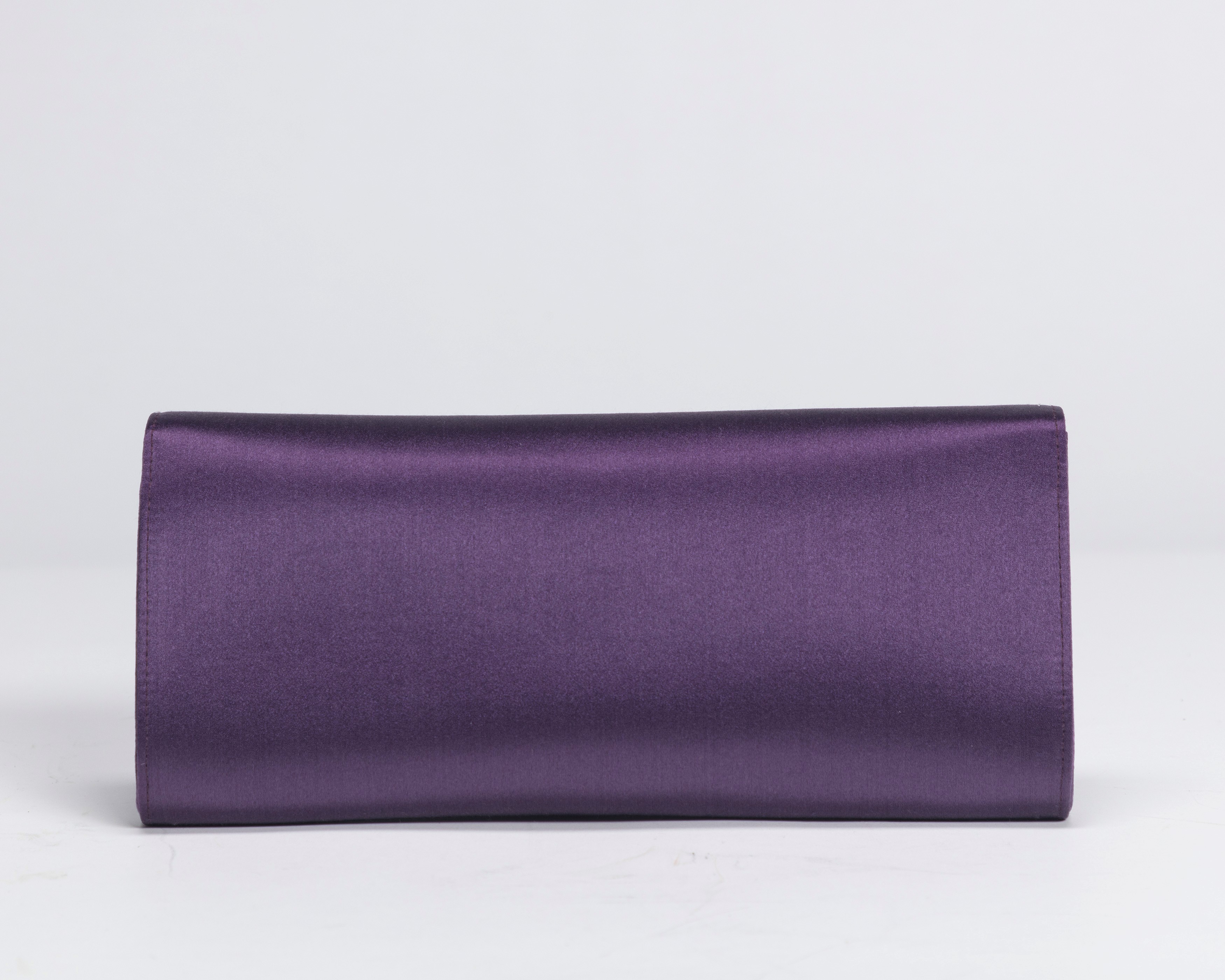 Cm 23,5Violet satin silk clutch, metal gilt details, cm 23,5 (new and never worn)