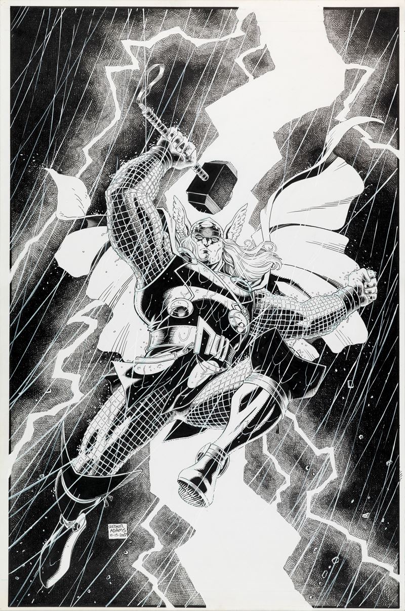 Original cover made by Adams for "Wandering Gods" published in Thor n. 6 by Marvel in 2007. Signed and dated.