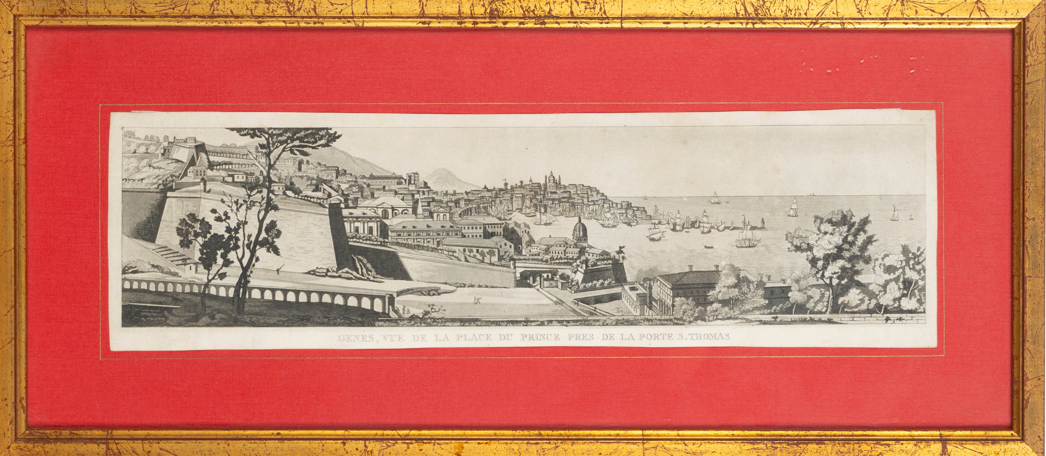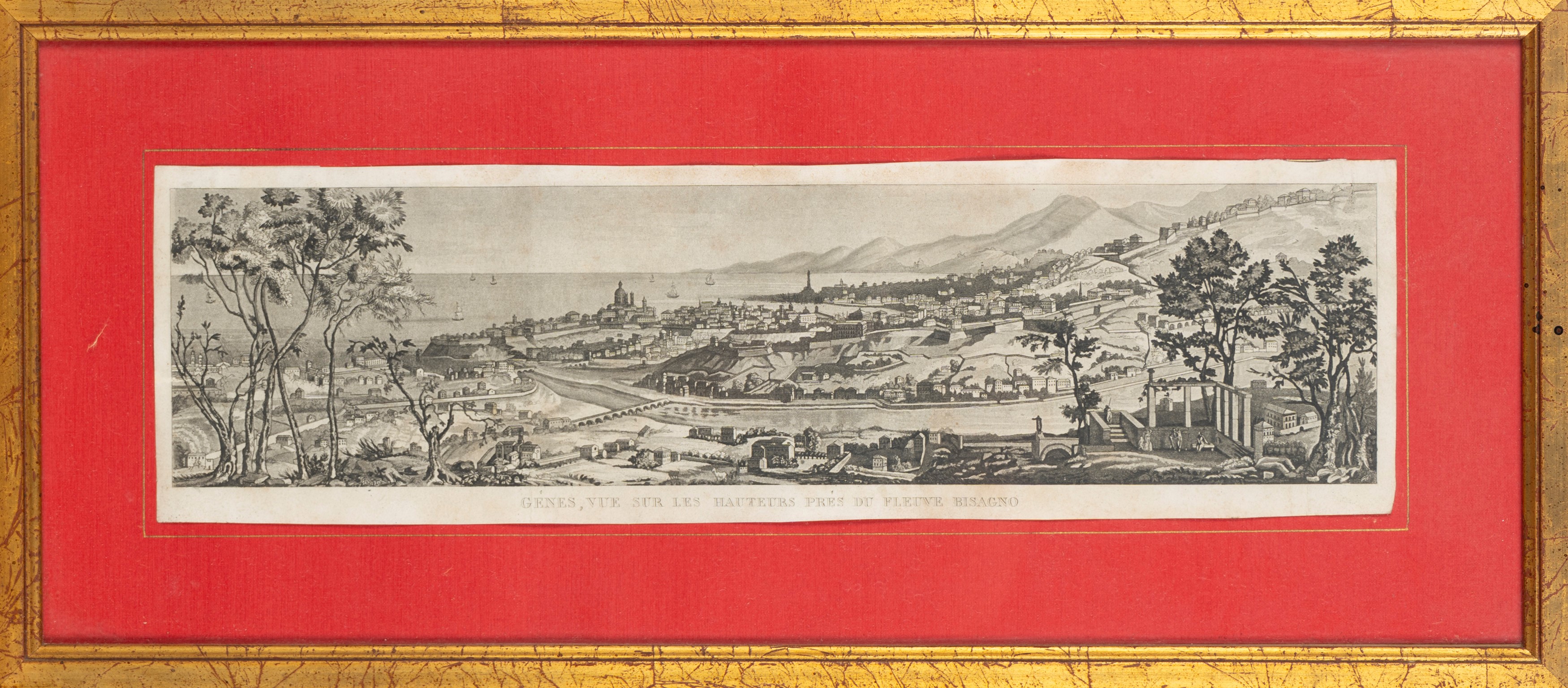 Pair of prints: Vue de la place du prince pres de la porte S. Thomas and Vue sur les hauteurs pres du fleuve Bisagno.