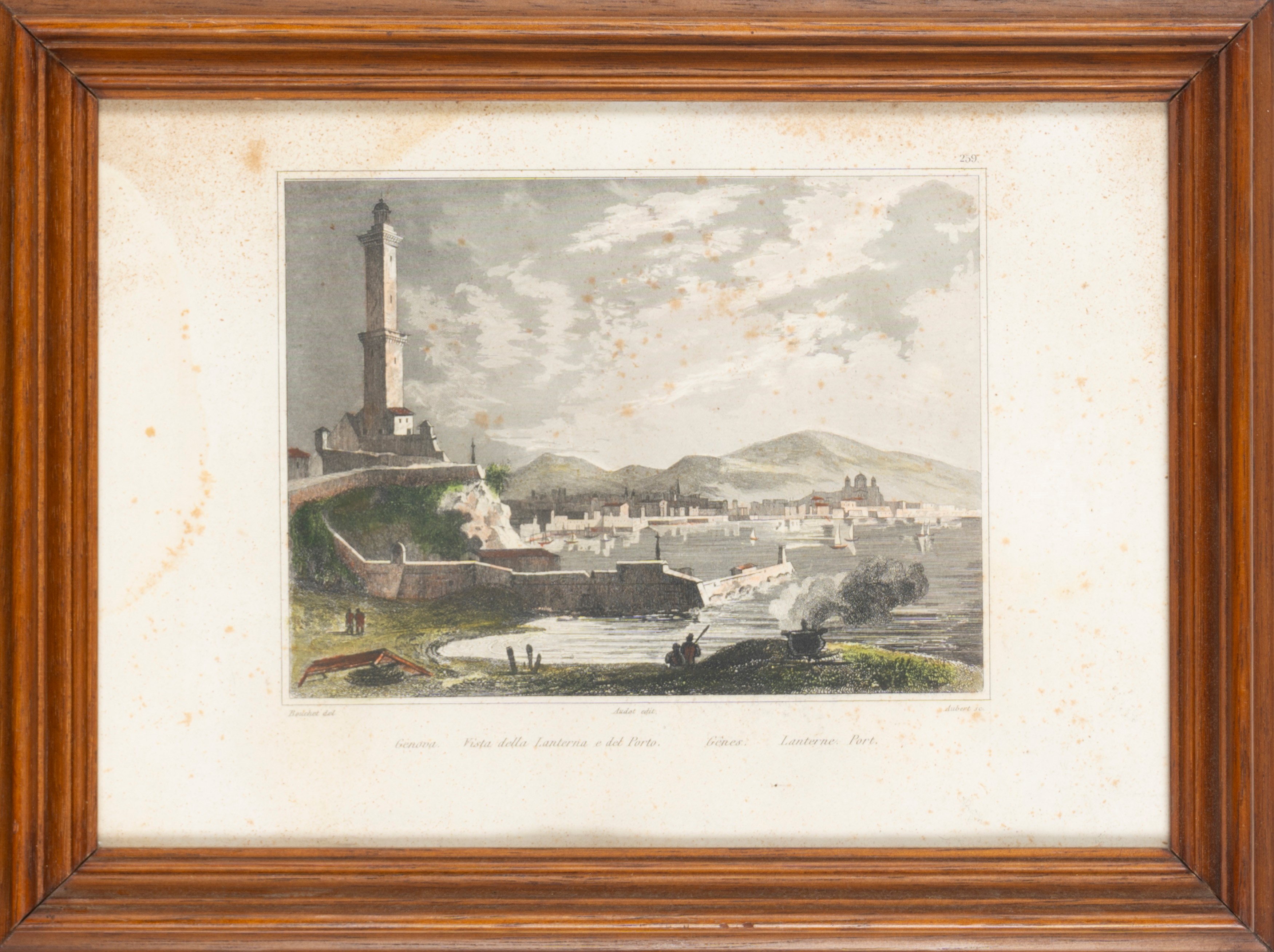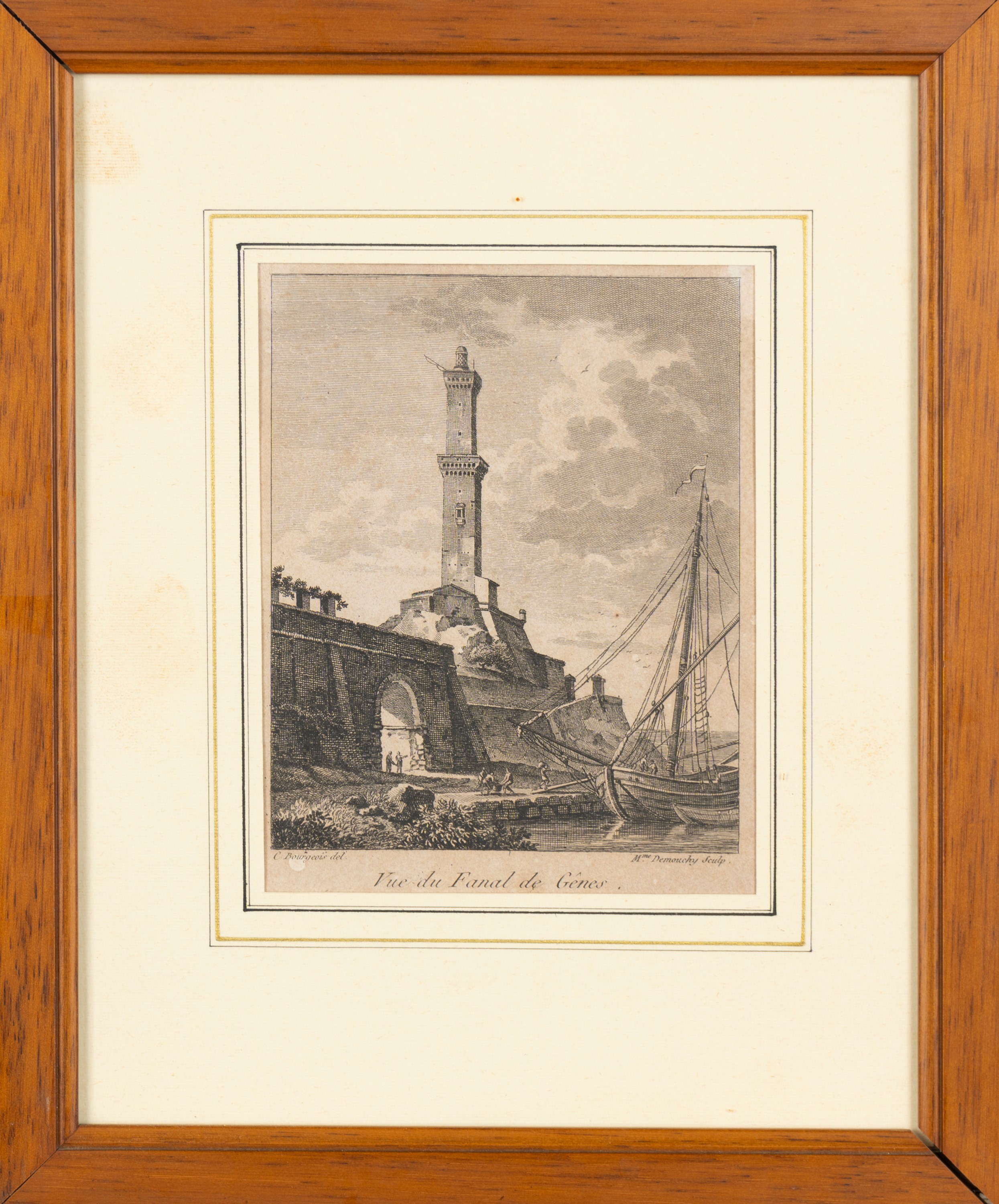 View of the lighthouse of Genes drawn by Bourgeois and engraved by Demouchy; together in the lot are three other splendid views of the lantern of Genoa.