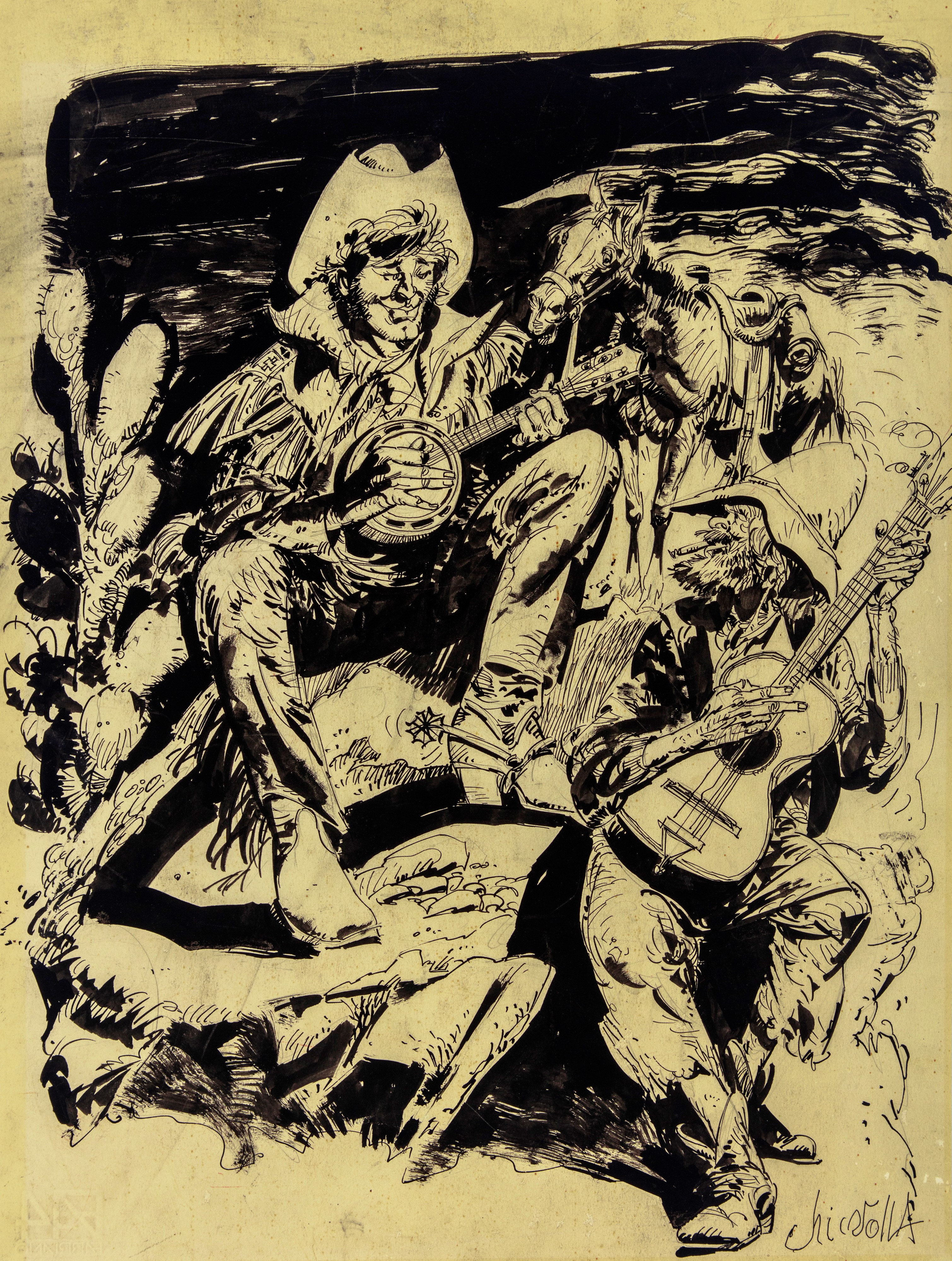 Lot consisting of three original illustrations made by Chiarolla during the 1980s. Signed.