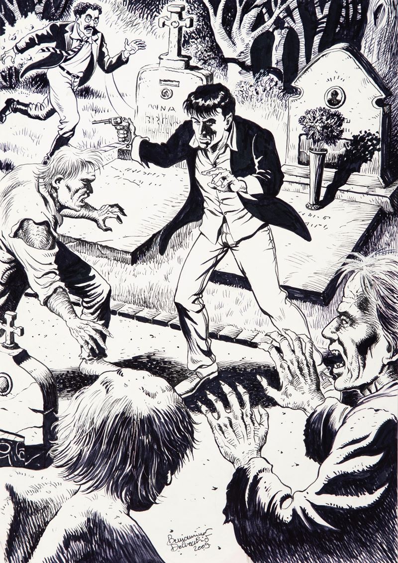 Original illustration made by Delvecchio as a tribute to Dylan Dog. Signed and dated.