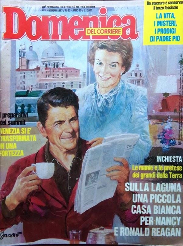 Original cover made by Jacono for La Domenica del Corriere, June 4, 1987. Pinholes in the margins and slight corrugation of the cardboard. Signed.