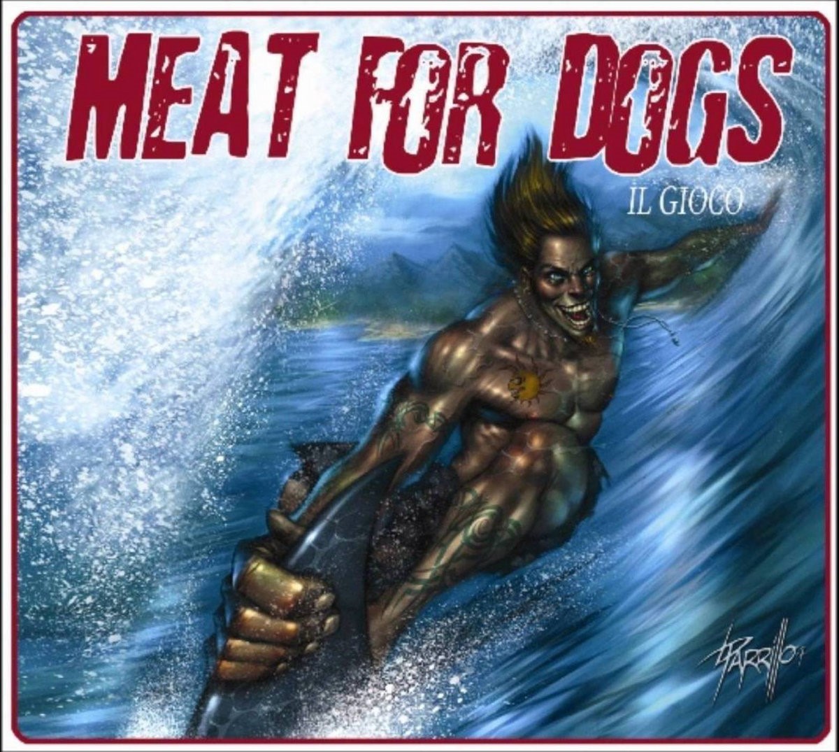 Original painting made by Parrillo for the cover of the album "Il Gioco" by the Italian band Meat For Dogs, published by Narcolettica Rec. in 2008. Pinholes in the margins. Signed and dated.