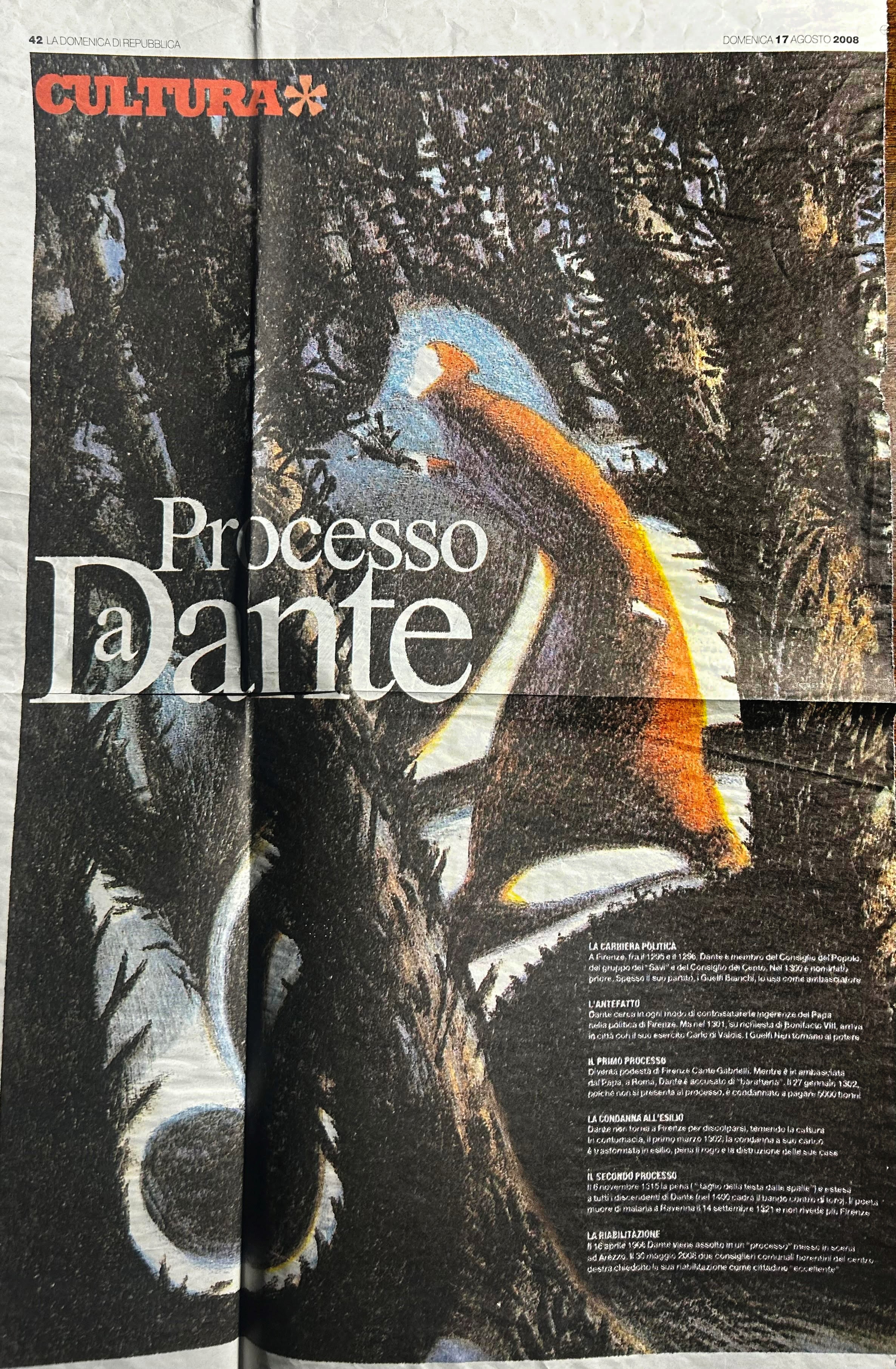 Original illustration made by Mattotti for his famous interpretation of Dante's Inferno published for the first time in the volume "La Divina Commedia - Inferno" by Nuages editions in 1999. The most iconic image of the entire artwork, the incipit of the first canto of Hell and, by extension, of the entire poem: "In the middle of the journey of our life / I found myself in a dark forest, / because the straight path was lost". << Mattotti dove into Comedy for what it is first and foremost: a book of adventures. He read it as one of his most inspired navigators, Jorge Luis Borges, asks us to read it: with abandonment and naivety, "with the faith of a child". It is with the faith of a child that Mattotti launched himself into Hell: recovering phantasmagoria lost in the dreamlike closets of childhood, favoring the nightmare against the symbol, unleashing the eye on the footsteps of ghosts, witches, vampires, Satanists >> (Jonny Costantino). Signed on the back.