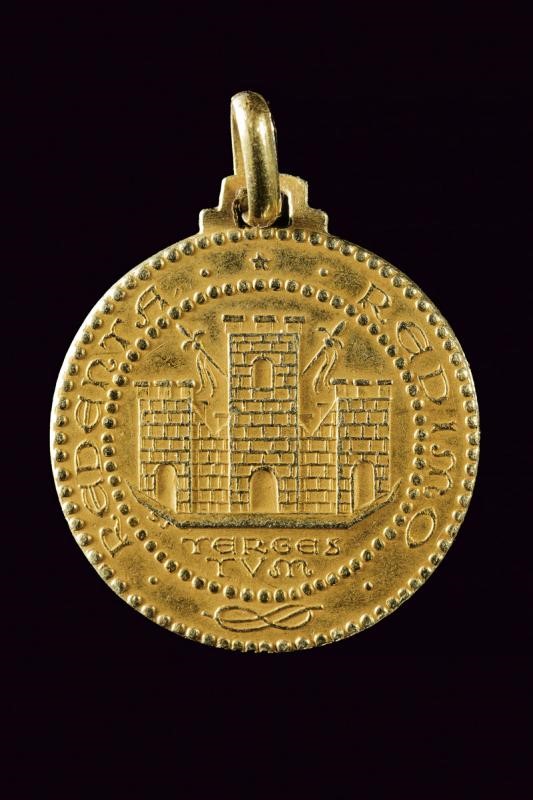 On the obverse an image of a cruiser with inscription "R. N. TRIESTE". Mark "K 18" with star. On the reverse city walls with motto of the cruiser "REDENTA REDIMO". 7.5 g.