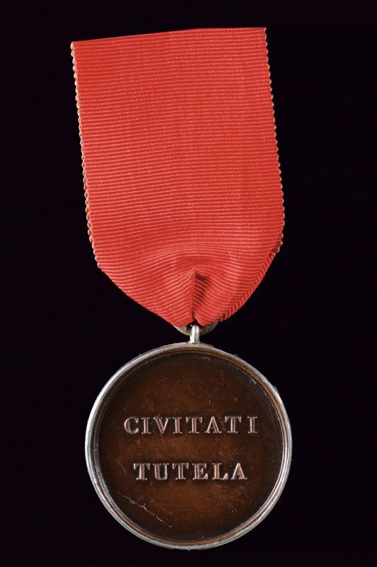 Medal- badge for gonfaloniers of state communities; made of bronze. On the obverse "PRINCIPI FIDES". On the reverse "CIVITATI TUTELA". In patina.