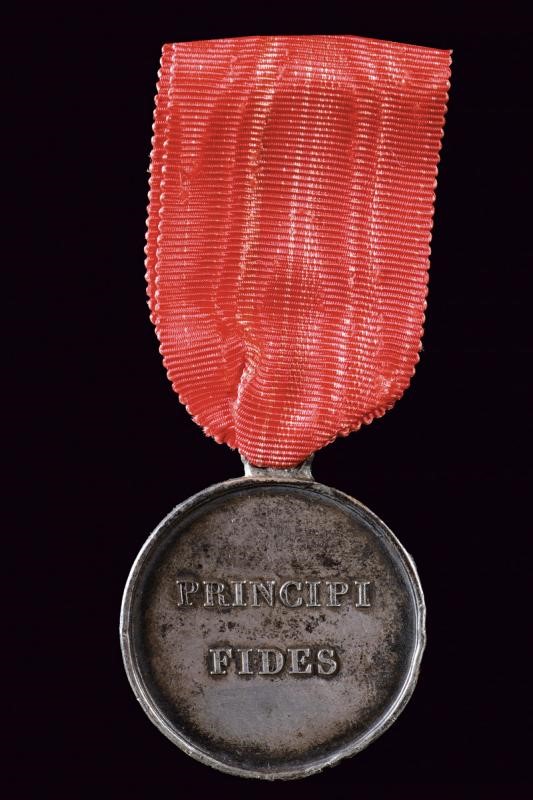 Medal-badge for gonfaloniers of state communities; made of silver. On the obverse "PRINCIPI FIDES". On the reverse "CIVITATI TUTELA". In patina.