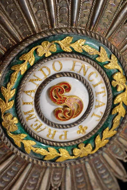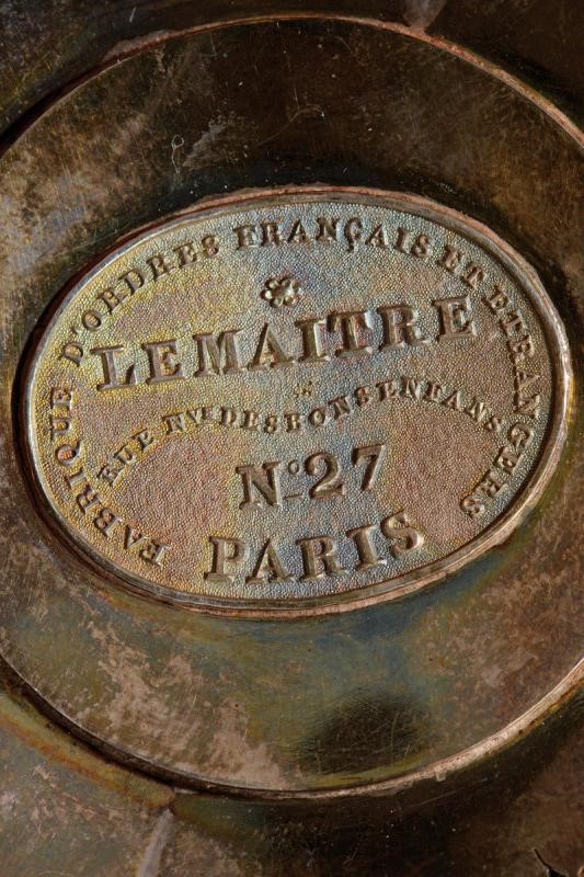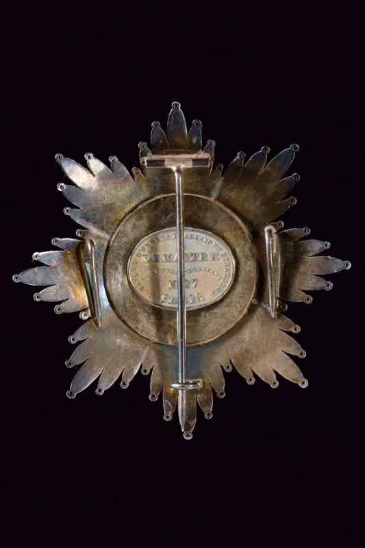 Star made of finely chiseled silver, all points with fretwork for the attachment; made of gold and enamel at the center. On the back the manufacturer's mark Lemaitre in Paris. Vertical pin and two side hooks.