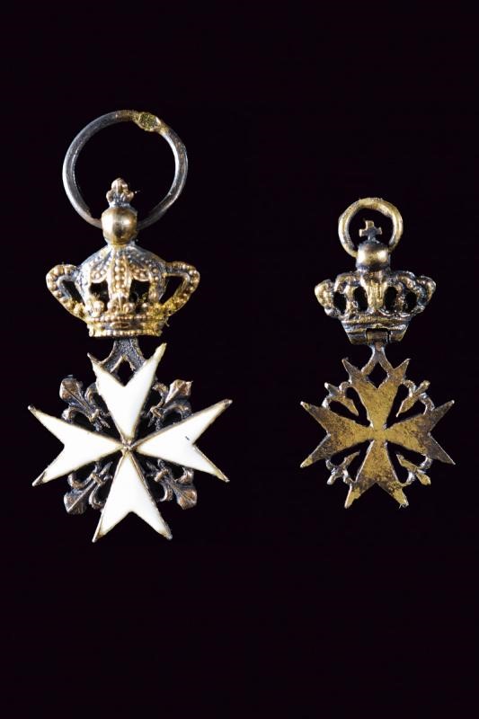 Lot of two miniature gold-plated and enamelled silver miniatures (the smaller one with enamel only on the obverse).