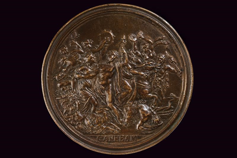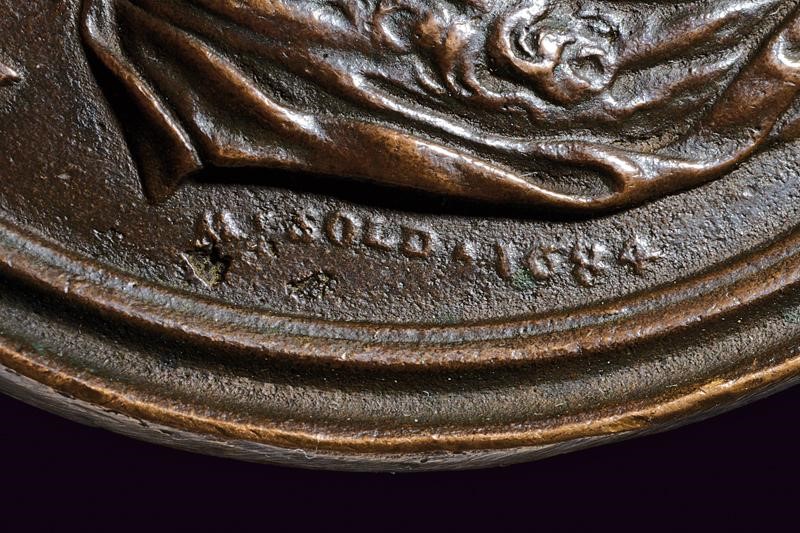 On the obverse, a bust (right) with long hair and draped cloak, with the inscription "FRANCISCVS REDI PATRITIVS ARETINVS", below the bust cut opus '"M. SOLD. 1684". On the reverse, a beautiful relief representation of Bacchus standing with a cup in his ri
