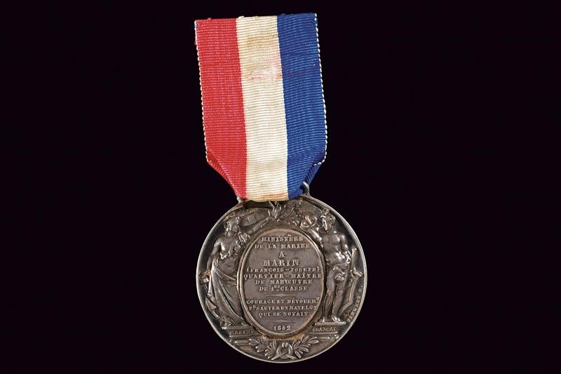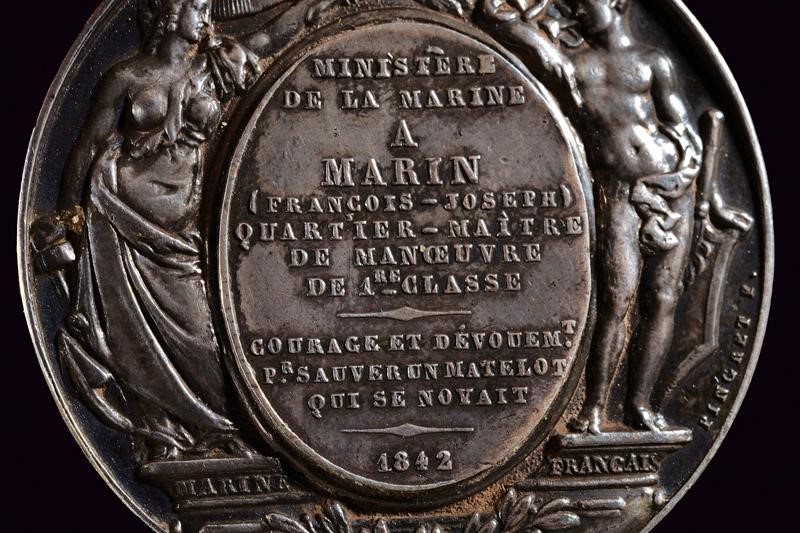 On the obverse, head (left) with the inscription "LOUIS PHILIPPE I ROI DES FRANCAIS". Opus: Montagny. On the reverse allegories in bas-relief with oval shield in the centre "MINISTÈRE DE LA MARINE A MARIN (FRANCOIS -JOSEPH) QUARTIER-MAÎTRE DE 1RE CLASSE C