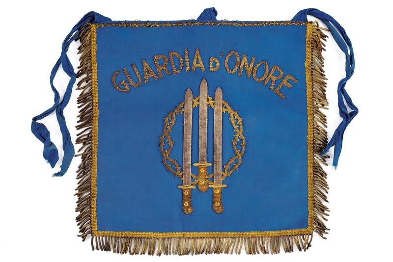Shaped as flashes for the veterans of the 81st Turin Infantry Regiment, with the same shape and colour as the flashes. Motto of the unit with infantry coat of arms within laurel wreath on one side and below the mottos "FIDE AC VIRTUTE" and "AUXILIUM MEUM A DOMINO". Interesting.