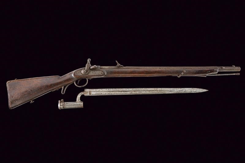 A rare jagerstutzen rifle with unusual breechloading system and bayonet, Third quarter of the 19th Century
