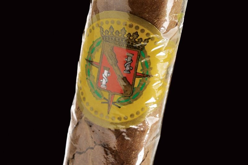 A cigar from the Caudillo's personal stock. Label featuring the Caudillo's coat of arms. In its original wrapping.