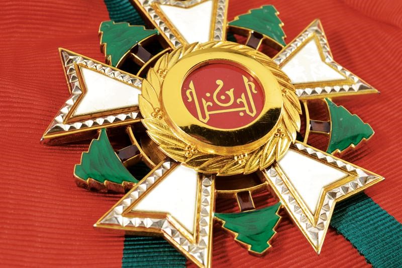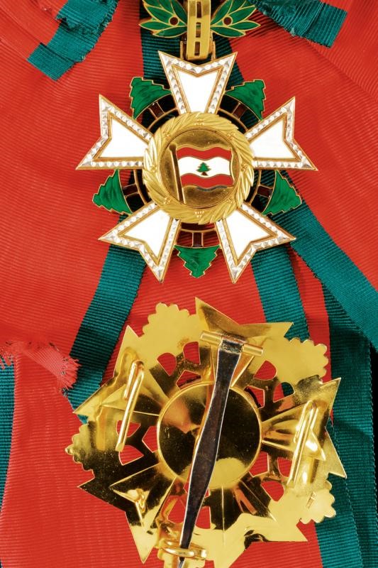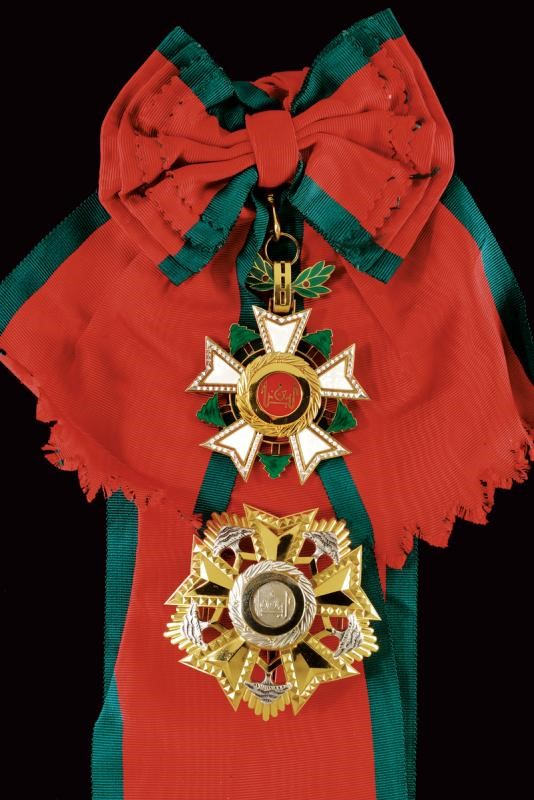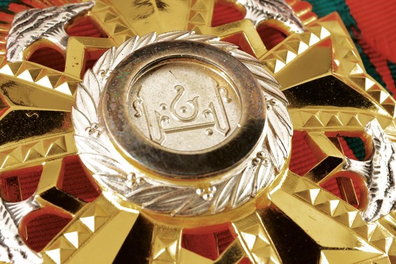 Grand Cross set, partially gilded and enameled. Plate marked "0.925" and with mark. Pendant with sash.