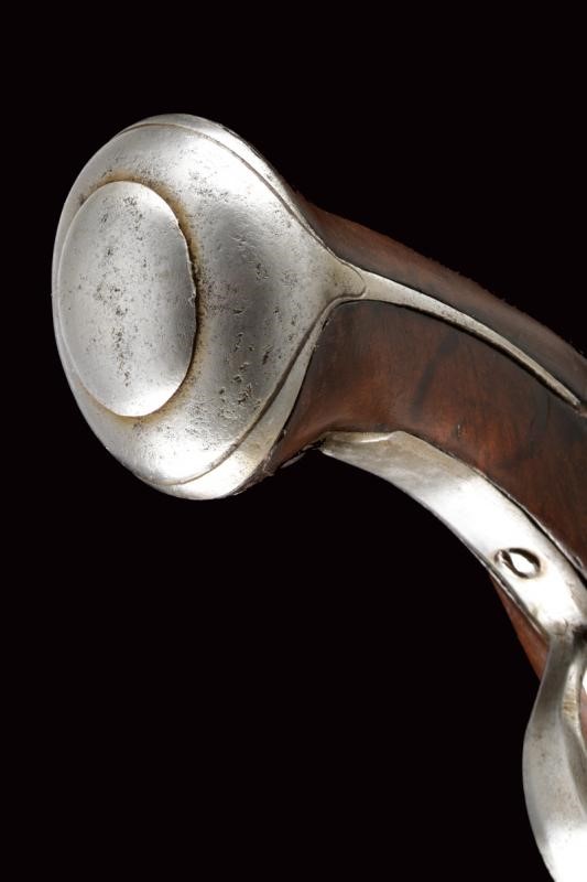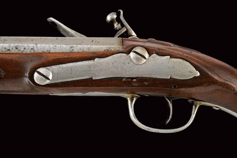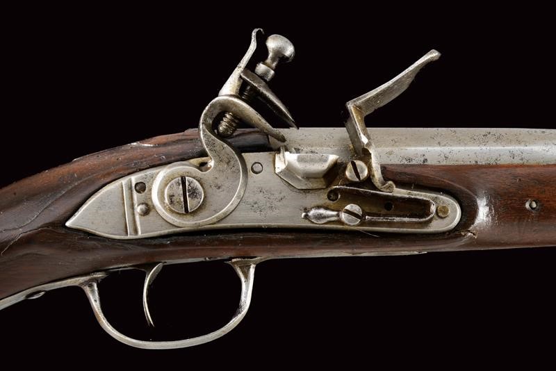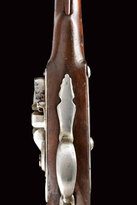Smoothbore, 19 mm cal barrel with octagonal breech. Shortened. Flintlock with flat plate and lowered tang. Working mechanism. Full wooden stock, shortened and restored at the front. Iron mounts. Wooden ramrod, not pertinent.