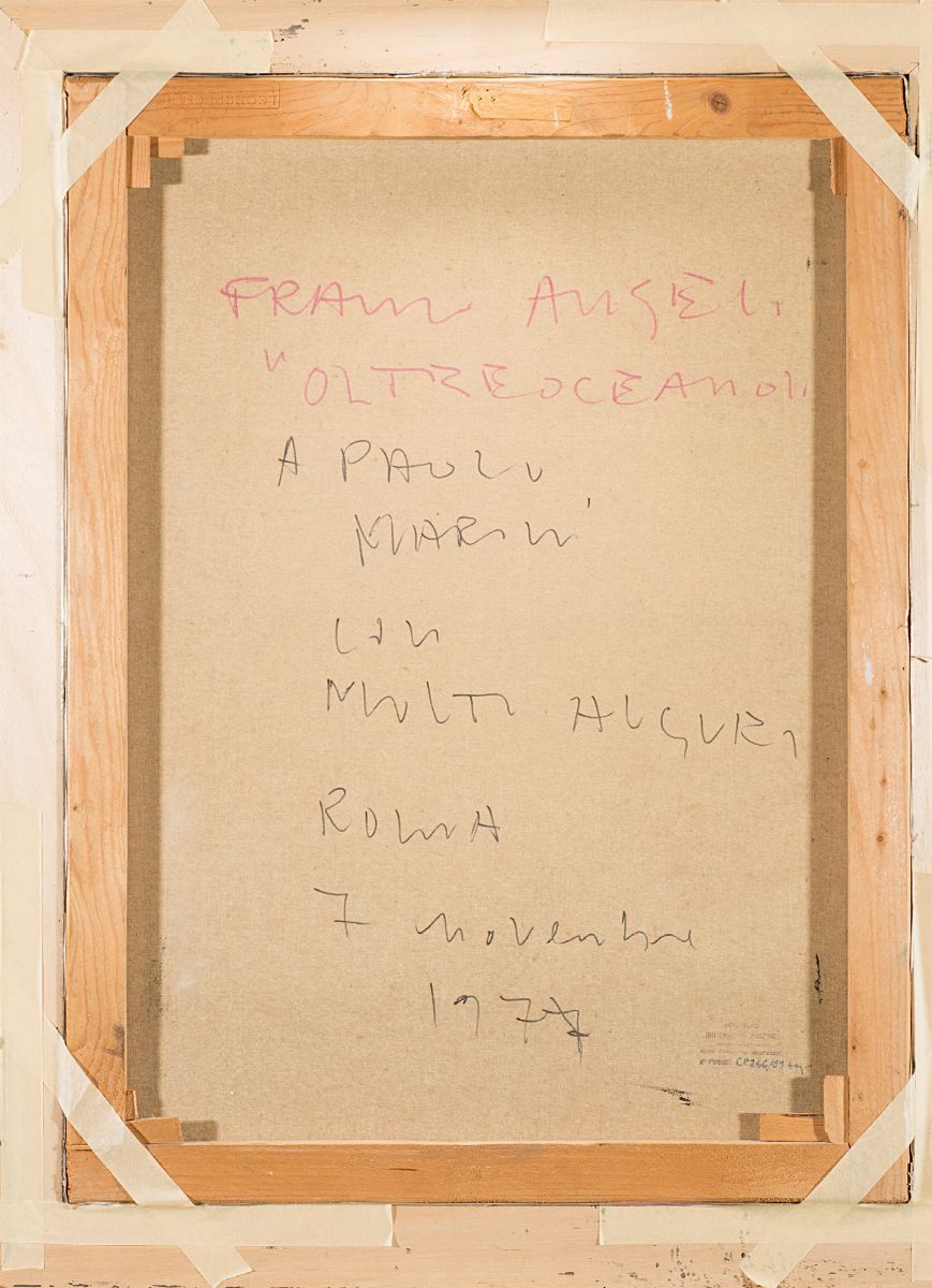 Signed and titled on the reverse: Franco Angeli "Oltreoceano"