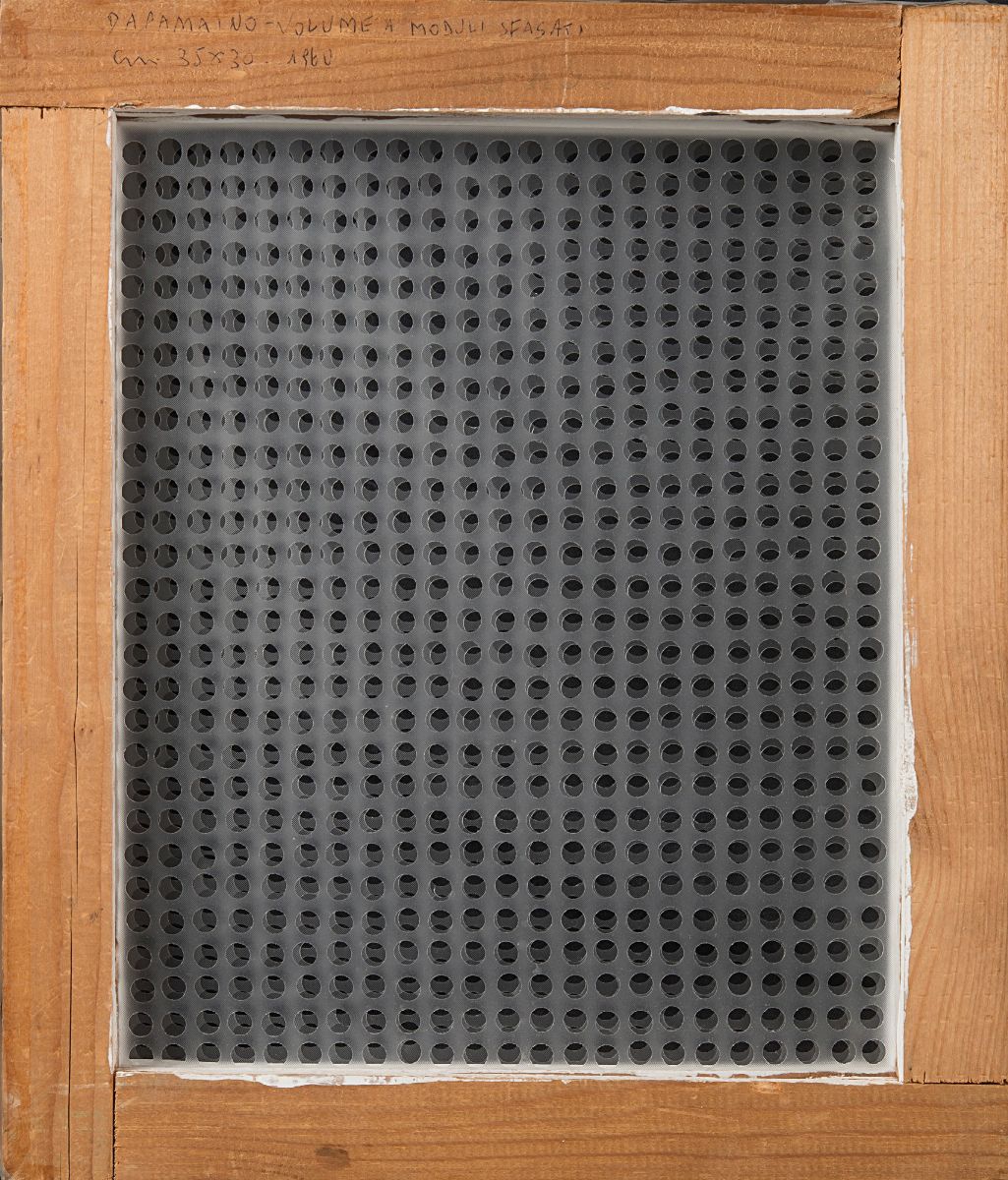 Signed, titled and dated on the reverse:Dadamaino - Volume a moduli sfasati 1960