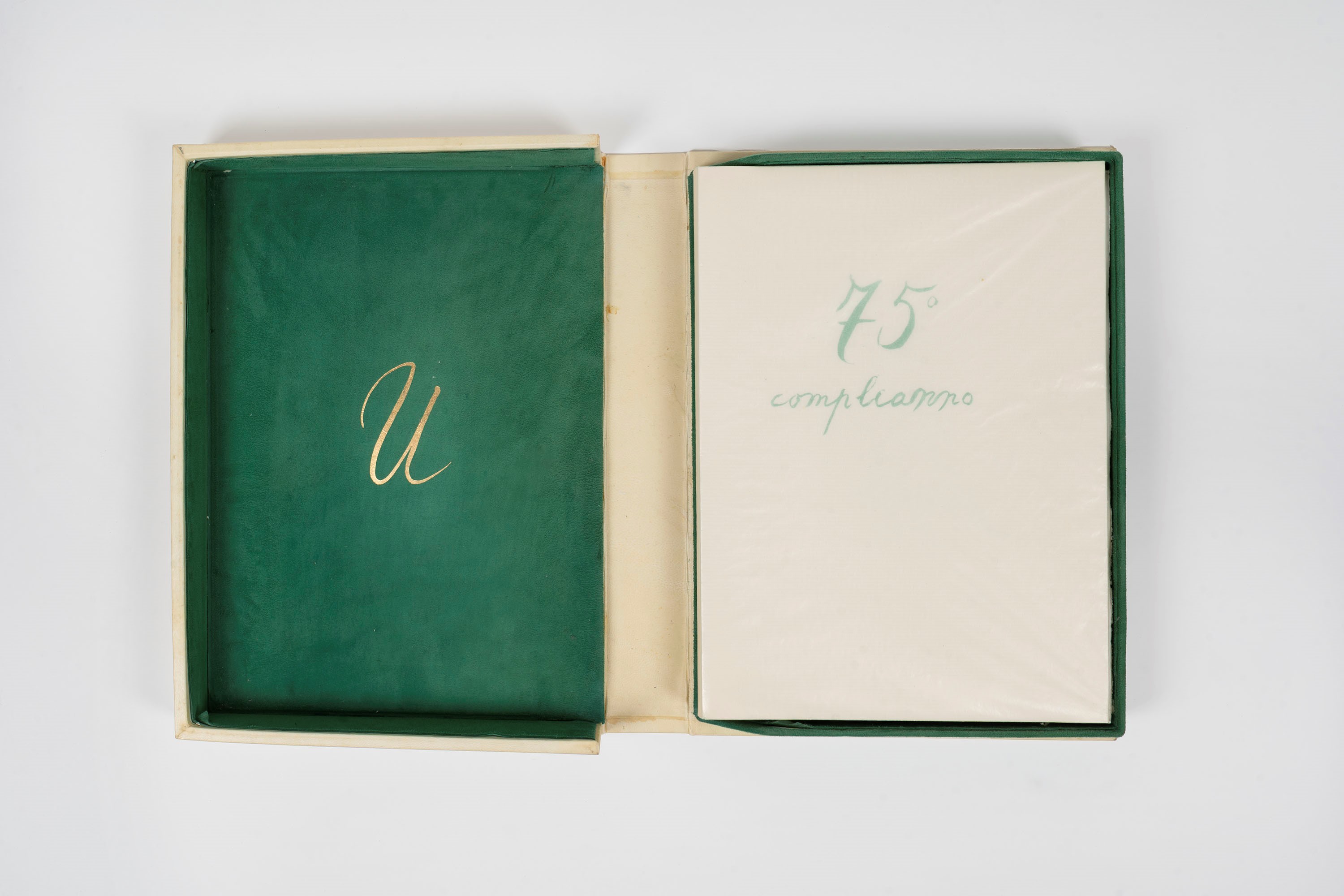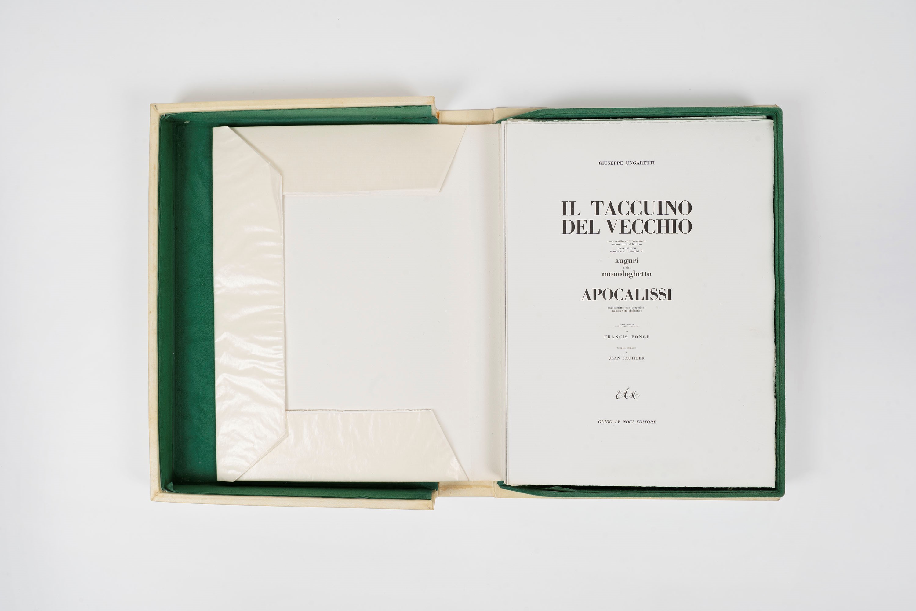 Within original parchment case lined inside with emerald green suede, with Ungaretti's monogram in gold on the internal plates.