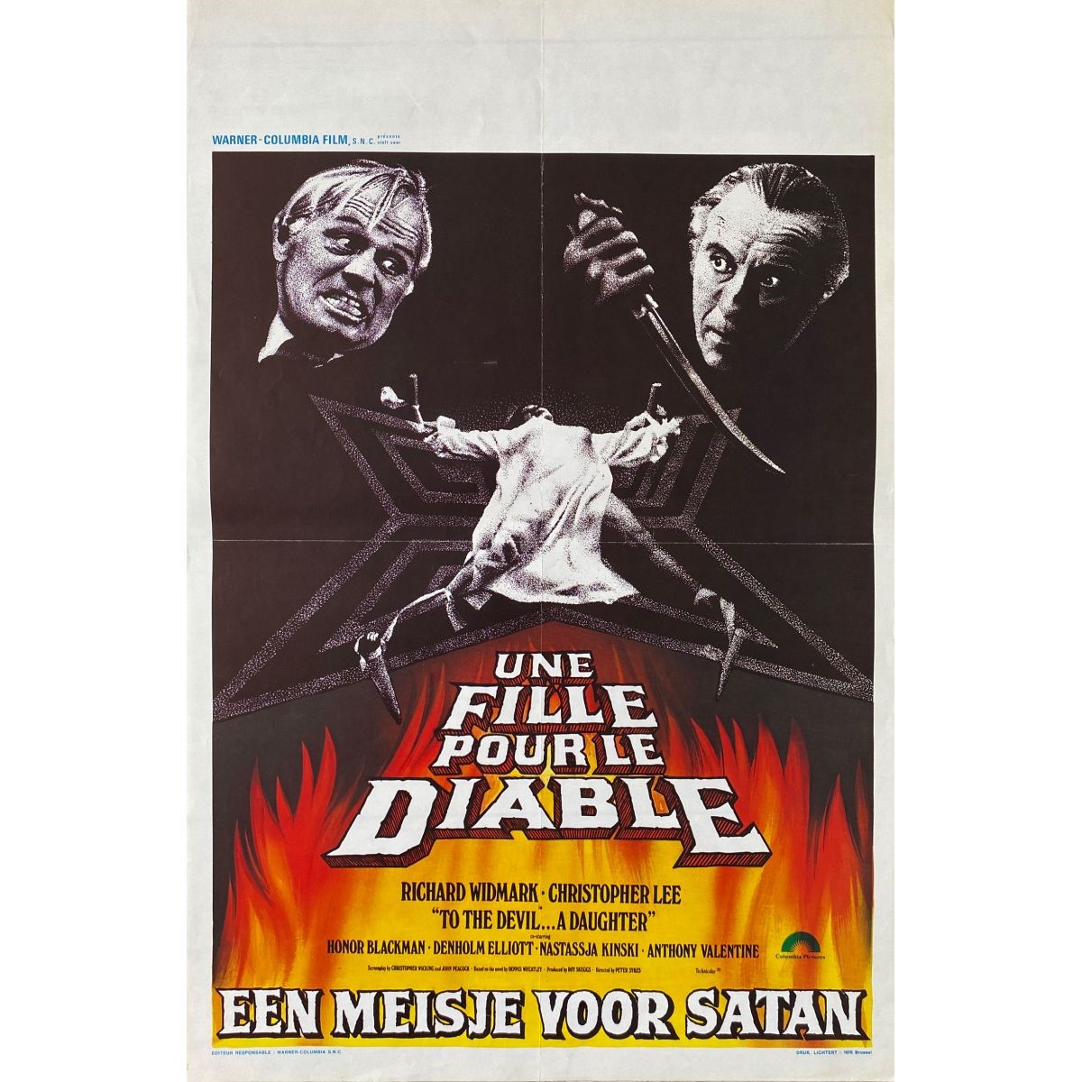 Original artwork made for the French movie poster of "To the Devil a Daughter", directed by Peter Sykes with Richard Widmark and Christopher Lee in 1976. Slight crease at the lower corners.