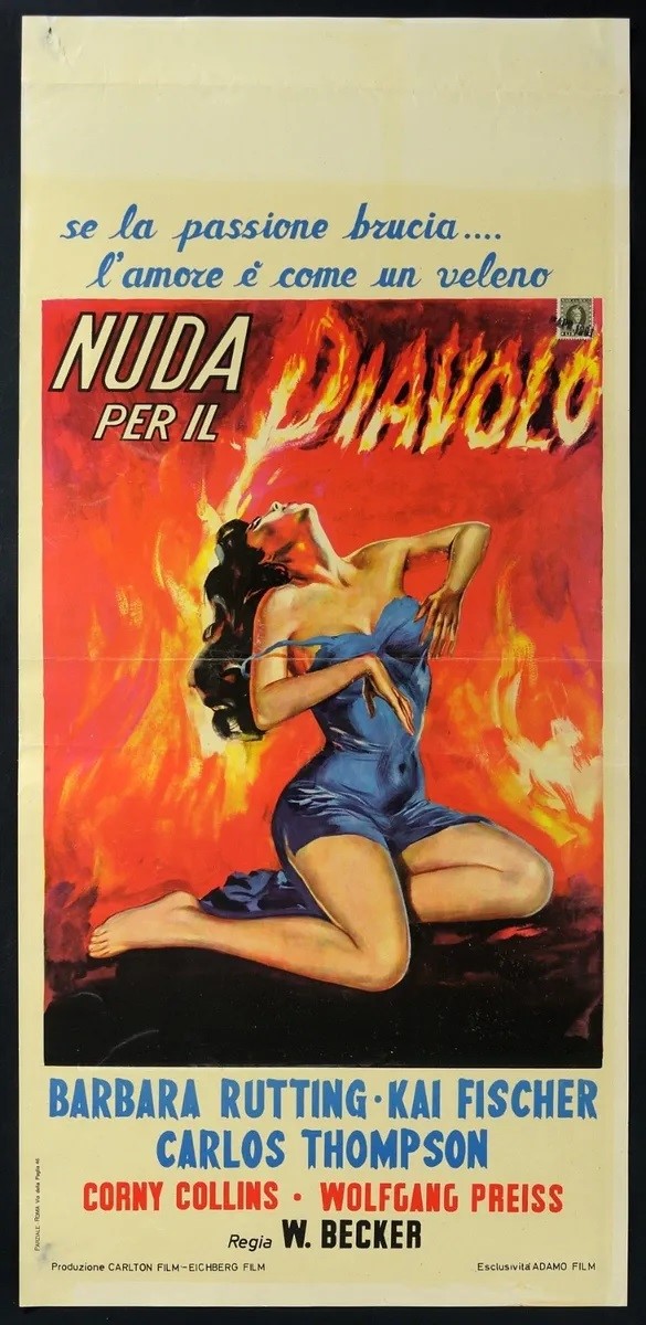 Original artwork made by Casaro for the movie poster of "Nuda per il diavolo", directed by Wolfgang Becker with Barbara Rutting and Kay Fisher in 1958.