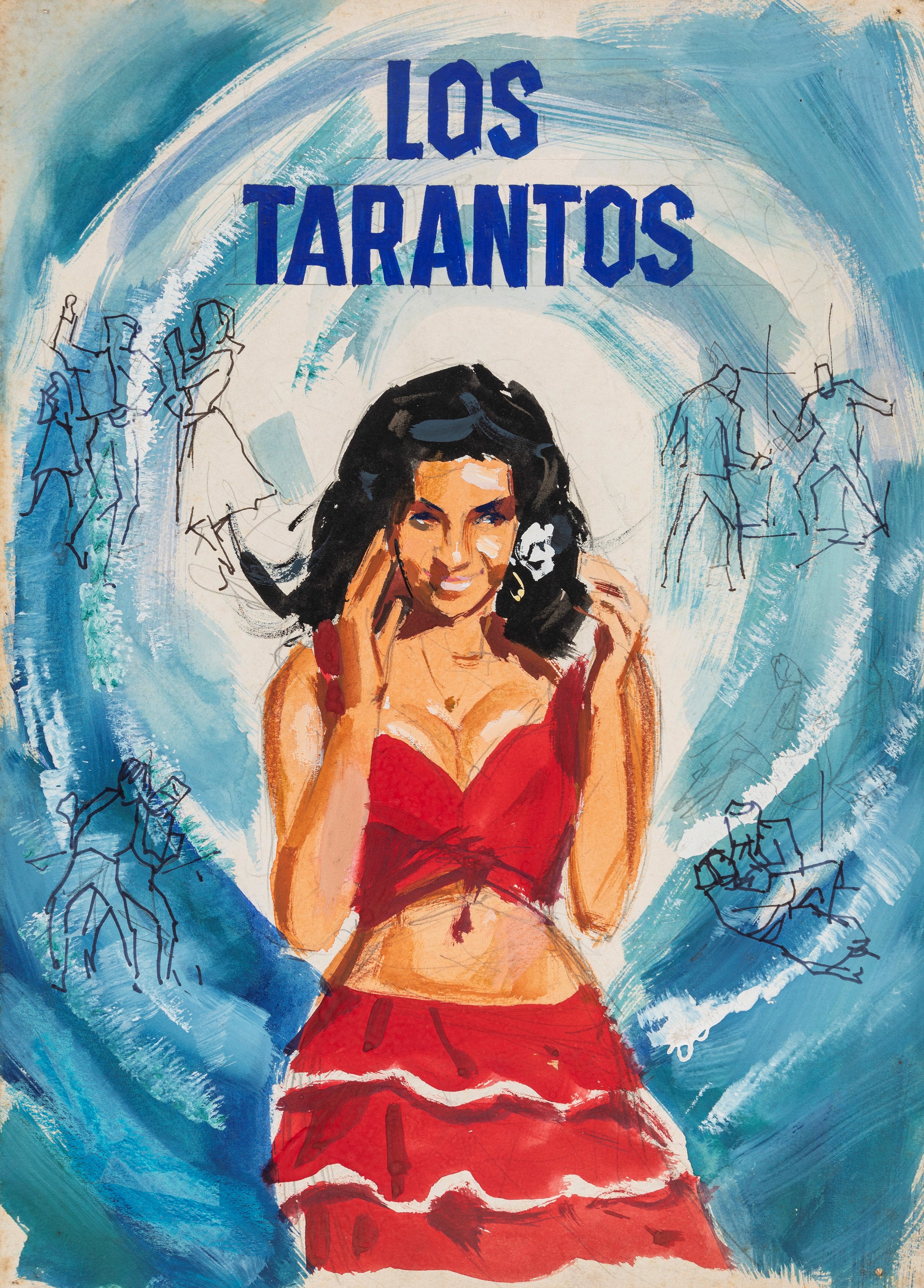 Pair of 2 original artworks made for the movie poster of "Los Tarantos", directed by Francisco Rovira Beleta with Carmen Amaya and Antonio Gades in 1963.