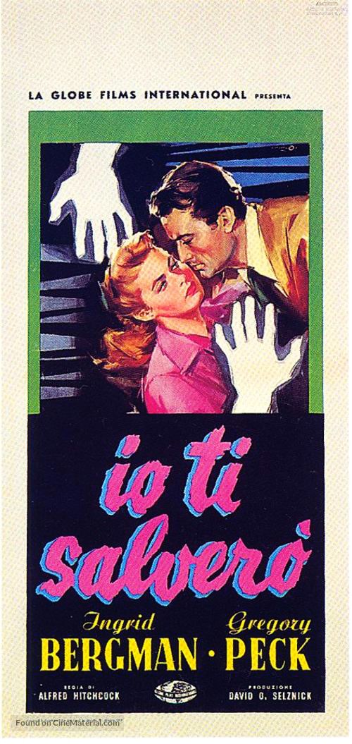 Original artwork made by Cesselon for the movie poster of "Spellbound", directed by Alfred Hitchcock with Ingrid Bergman and Gregory Peck in 1945. Posting holes, a small tear at the top and bottom margin, small losses at the right corners. Signed.