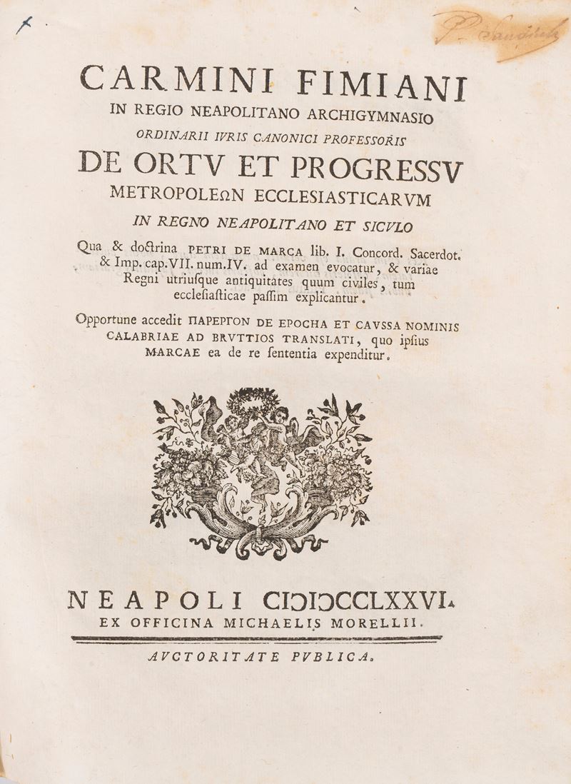 De ortu et progressu Metropoleon Ecclesiasticarum in Regno Neapolitano et Sicul, 1776