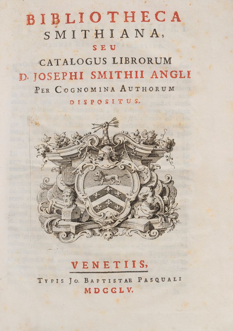 Bibliotheca Smithiana, seu Catalogus Librorum D. Josephi Smithii Angli per cognomina authorum dispositus, 1755