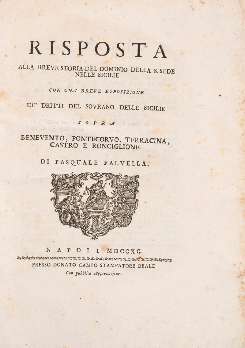 Response to the Brief History of the dominion of the Holy See in the Sicilies with a brief exposition of the rights of the Sovereign of the Two Sicilies, 1790