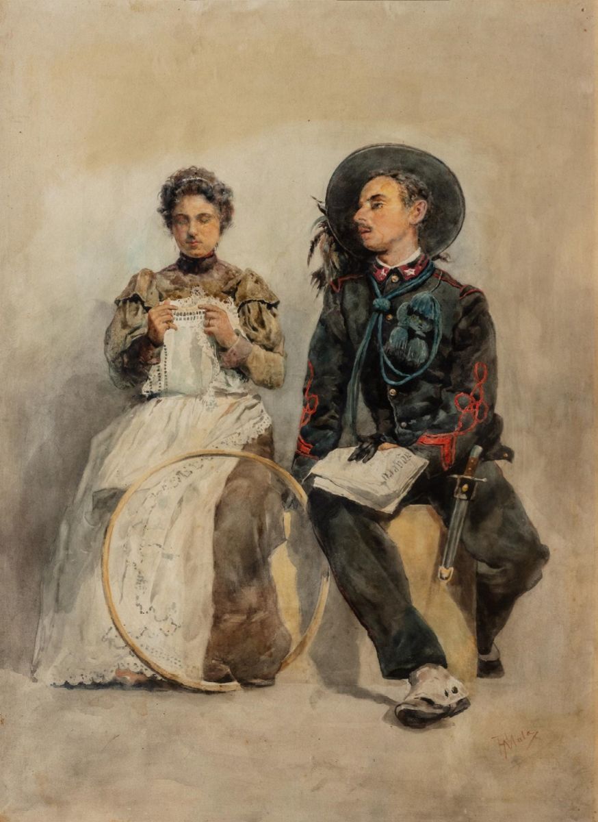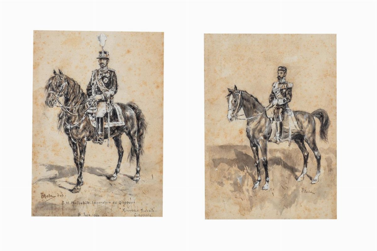 Uno firmato, intitolato e datato in basso: FMola dis. / S.M. Matsuhito. Imperatore del Giappone / 16 Febb. 1904 Guerra Russia Giappone