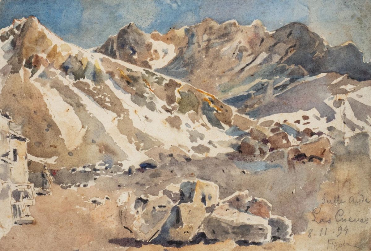 firmato, intitolato e datato in basso a destra: Sulle Ande / Las Cuevas / 8.11.94 / FMola
