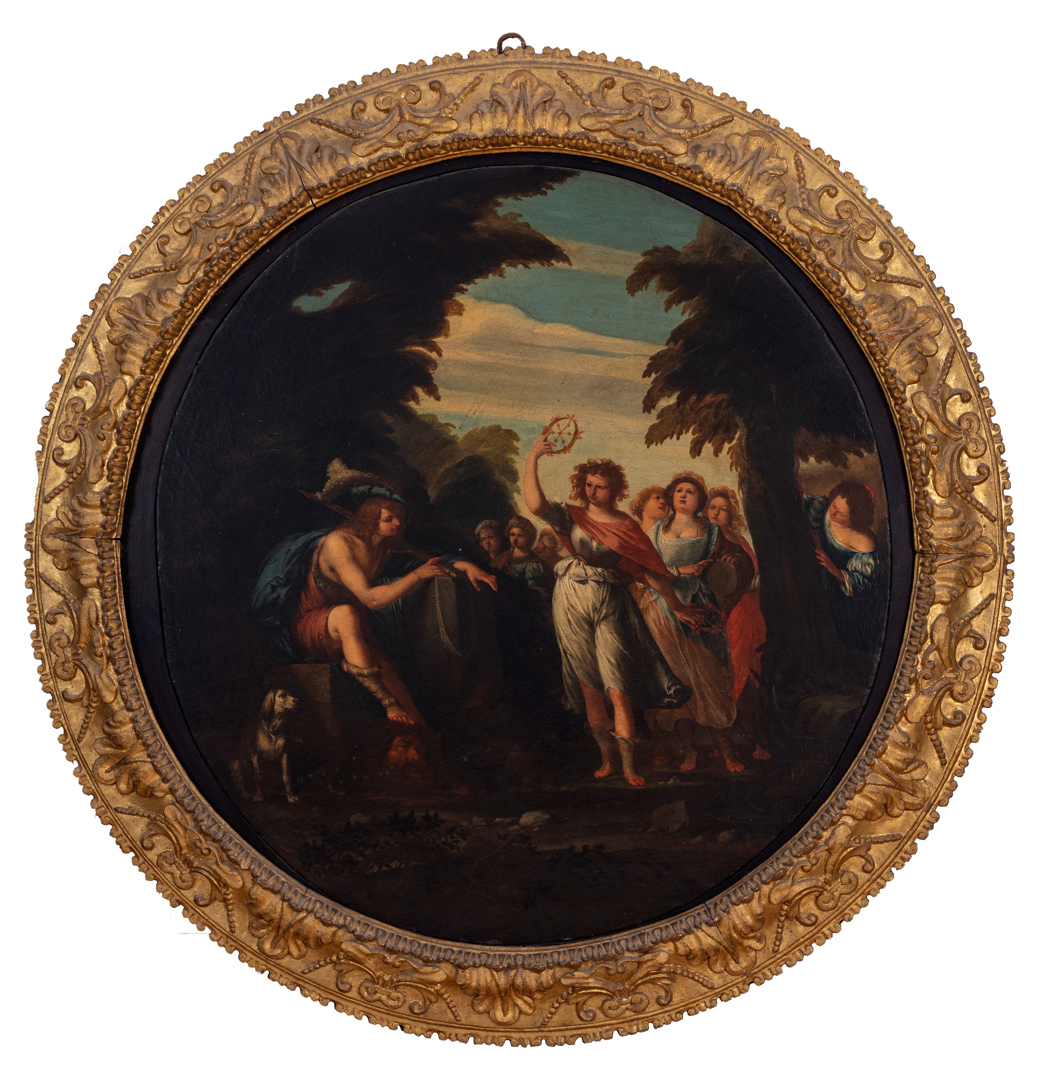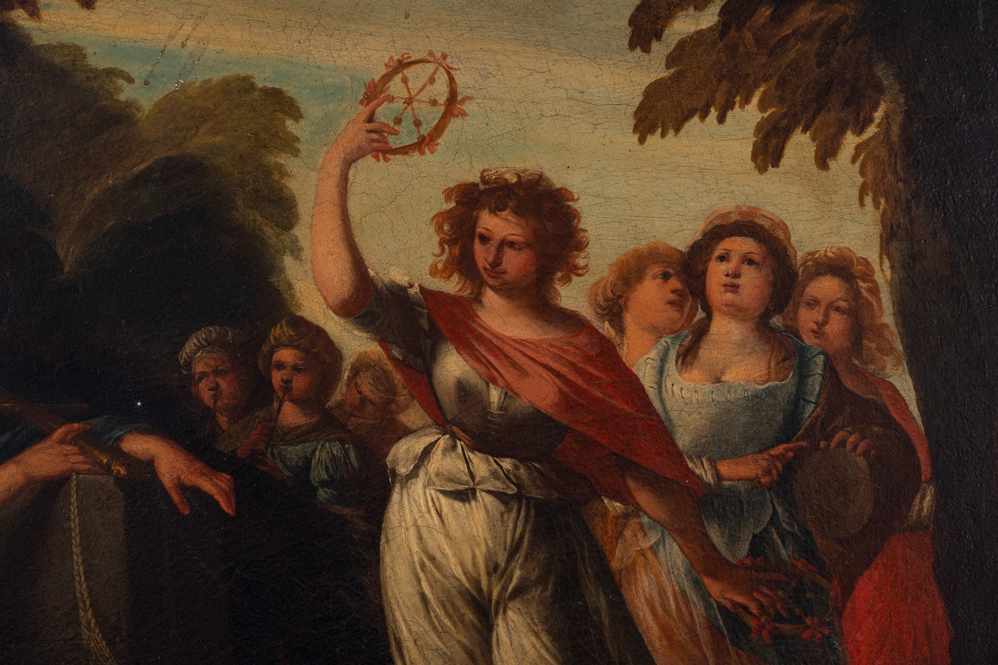 This work dates to the artist's mature period, closer to the academic classicism of Domenichino. The subject recalls the famous Triumph of David , now in the Uffizi, which dates to a younger period, but differs in its less emphatic and dynamic composition, which emphasizes the biblical hero's calm and reflective pose. The girls, instead of abandoning themselves to a frenetic dance, advance in an orderly and elegant manner from the background, rhythmically marking the space. In the Uffizi there is also an autograph drawing by Spinelli, which can be related to this painting because of the arrangement of the female procession, which advances frontally and in a tight group, with one of the figures raising her right arm in the same manner to shake the bells.