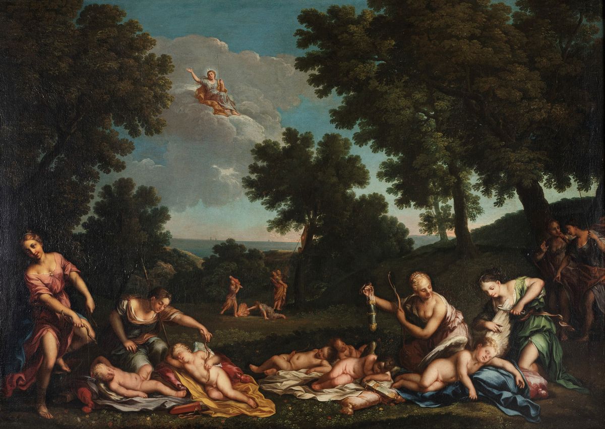 The work derives from a famous painting by Francesco Albani, kept in the Louvre Museum.