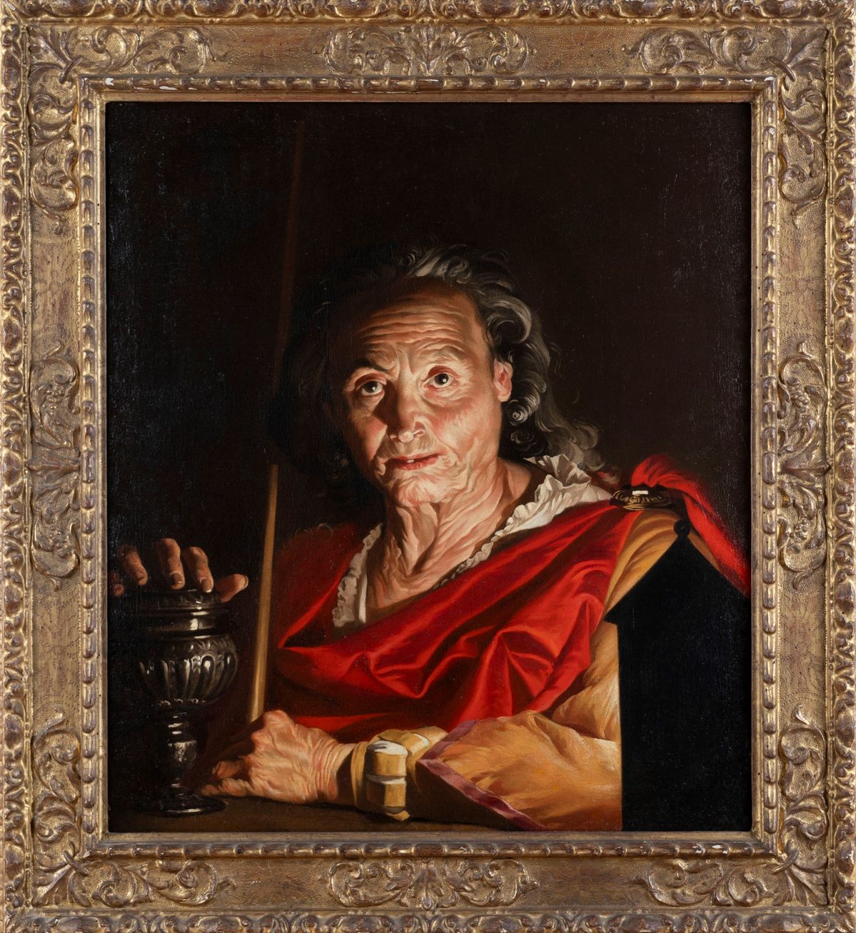 The subject, of ambiguous identification, would seem refer to the culture of the Utrecht school, in which everyday themes and naturalistic depictions were disguised as classical and literary iconography, with a satirical and parodic intent. In this case a portrait of an elderly woman, rendered with brutal realism in her merciless old age, is enriched by iconographic attributes (the urn, the wooden wand) which suggest an identification with the mythical Artemisia, wife of Mausolus.