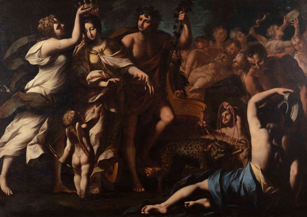 The work, of great visual impact and notable dimensions, reworks the iconographic theme of the procession of Bacchus which, from Annibale Carracci onwards, had great success among classicist painters, especially Emilian ones, as a perfect example of "history painting", in which it was possible to arrange a great variety of figures posed in elegant gestures and grandiloquent.
