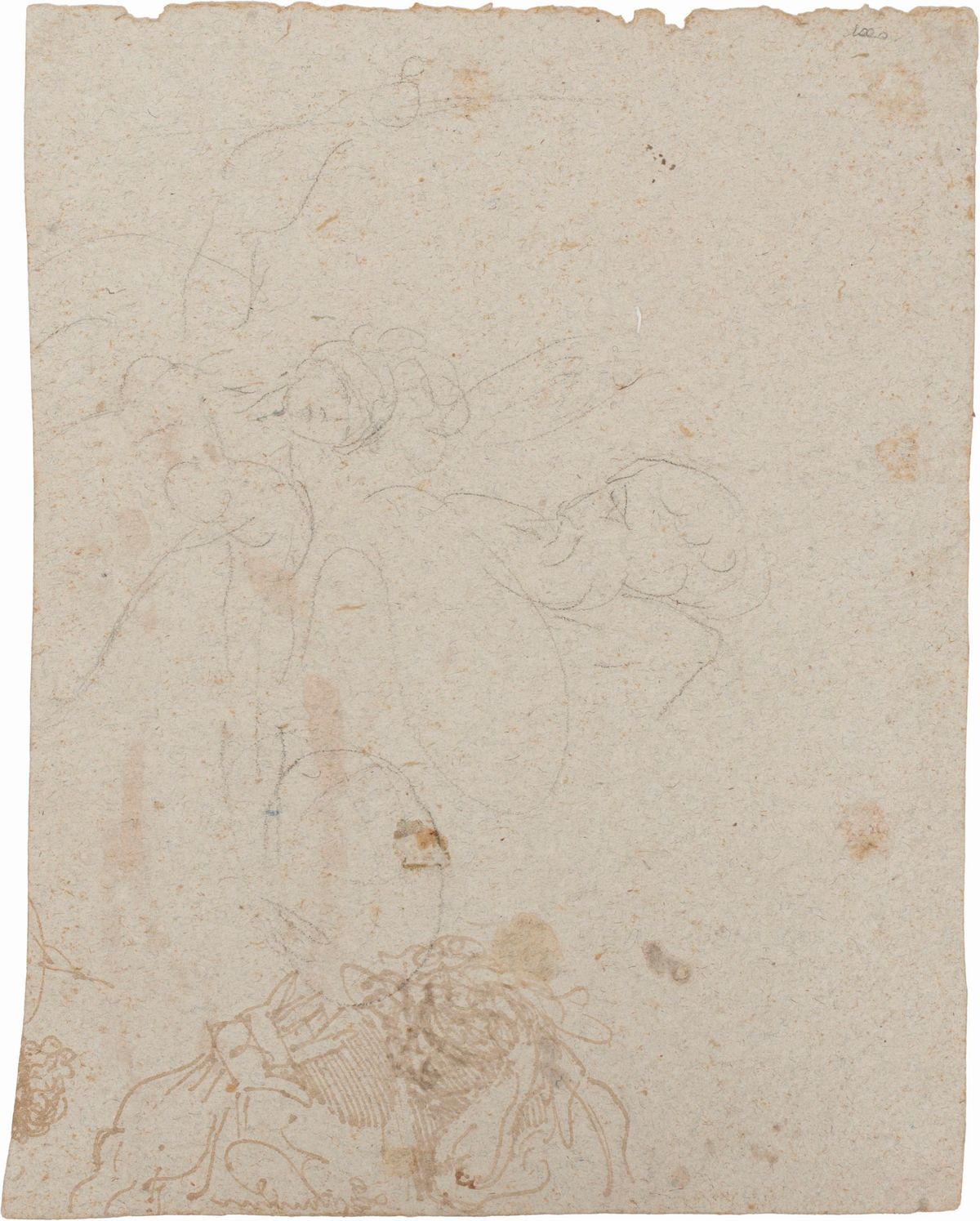 brown watercolor and charcoal on paper (recto); pencil and brown watercolor (verso)