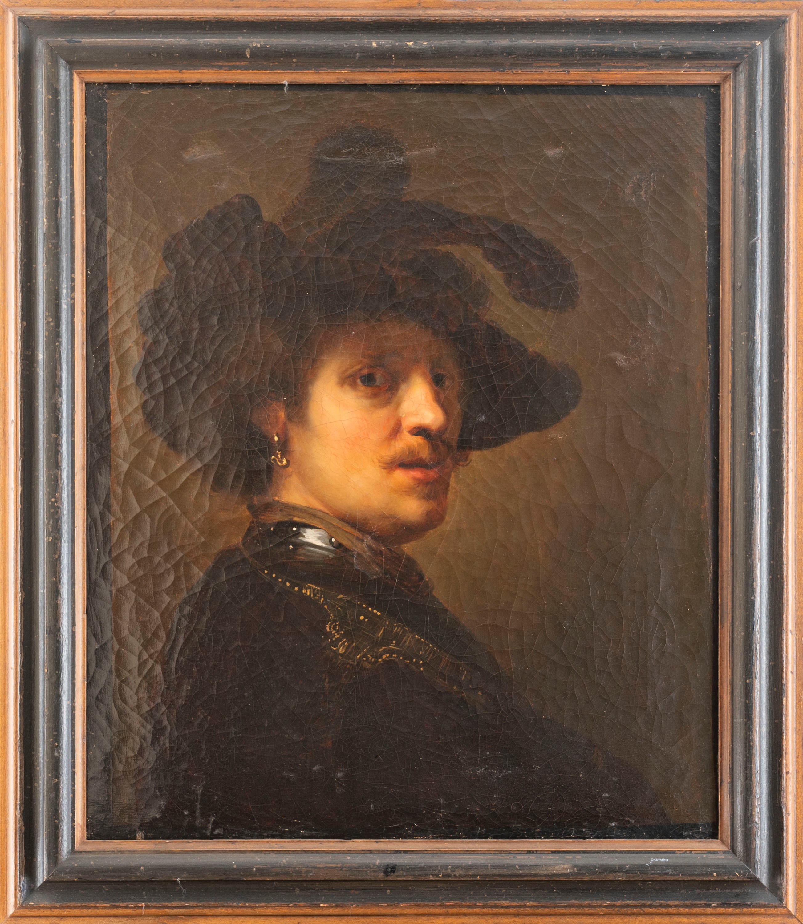 The painting is taken with variations from Rembrandt's portrait in The Hague, Mauritshuis Museum