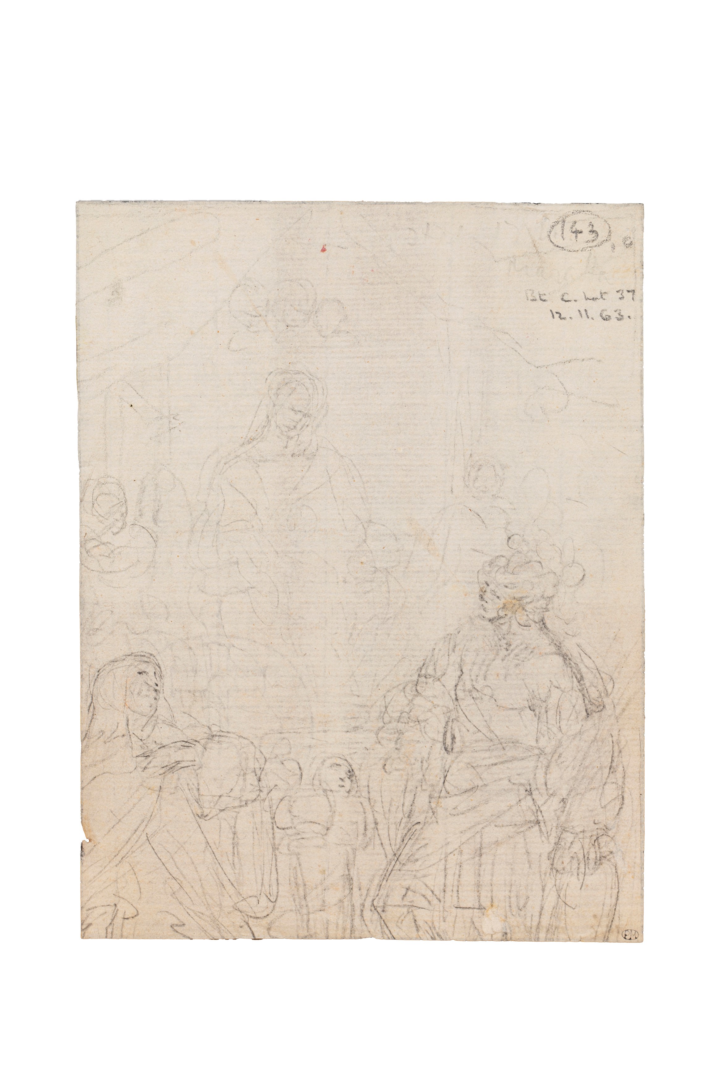 on the first, on the recto, inscription on the lower left in penCarlo Marati;on the lower right unidentified collector's mark "PM" within an oval and other illegible; on the versoFigure studies,mark "PM" and references to English auction catalogues (lot 37/12.11.63)