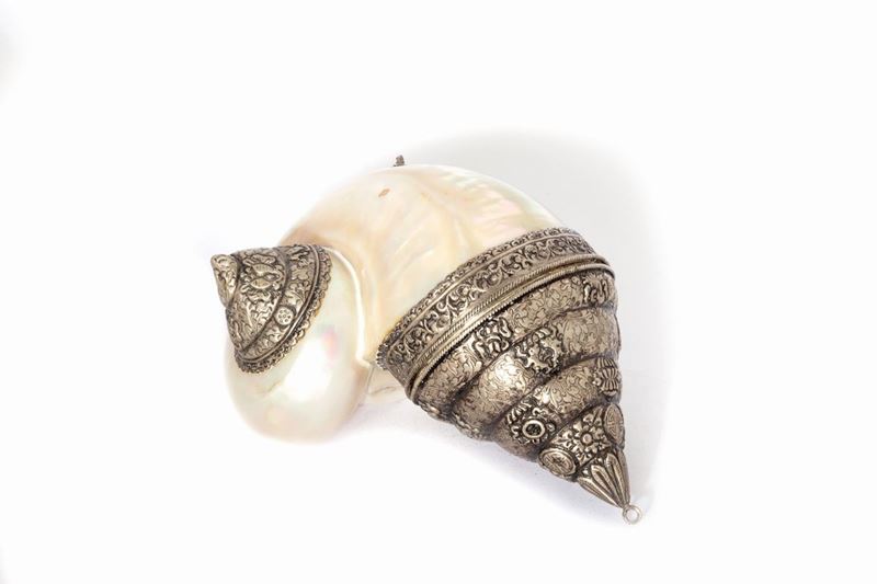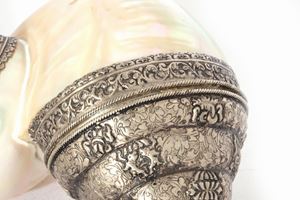 Nautilus with finely chiseled silver inserts, Tibet early 20th century