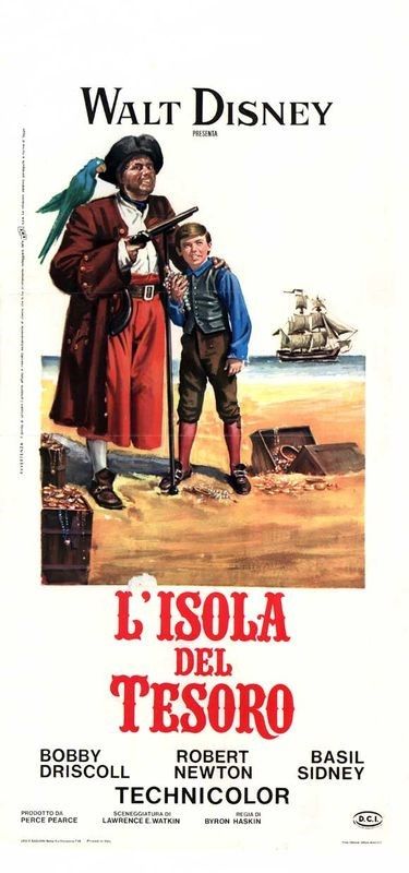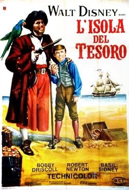 Tempera on cardboard. Original sketch done by Napoli for an Italian version of the official poster for “Treasure Island, directed by Byron Haskin and starring Bobby Driscoll and Robert Newton, produced by Walt Disney Productions in 1950.