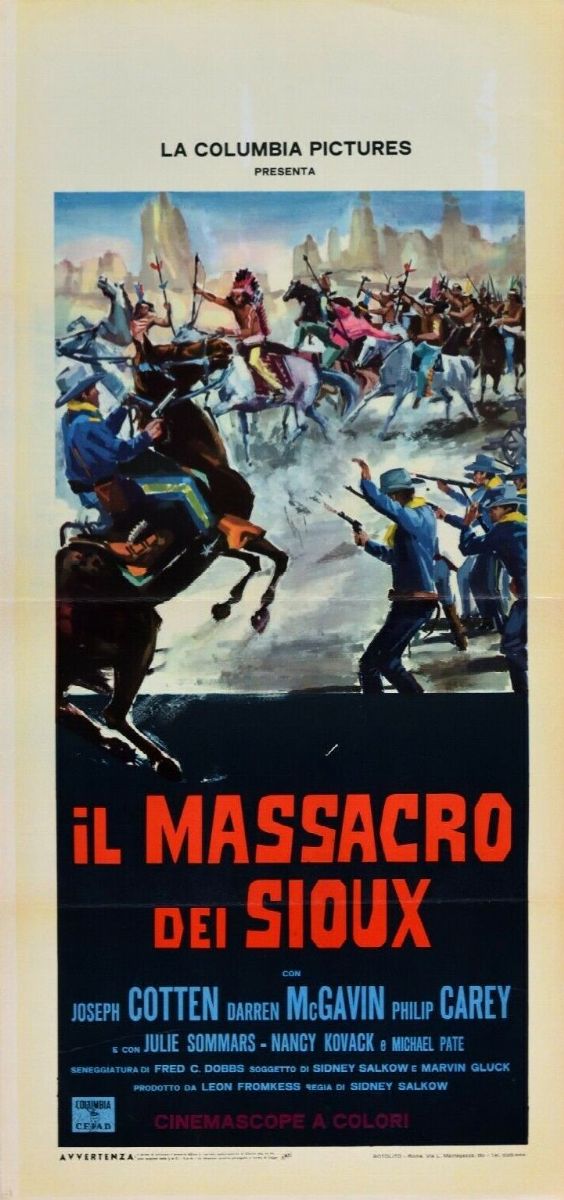 Tempera on thin cardboard. Original sketch done by Brini for the official movie poster of “Il massacro dei Sioux”, directed by Sidney Salkow with Joseph Cotten, Darren McGavin and Philip Carey in 1965. Slight pin holes on the corners. Signed at the back.