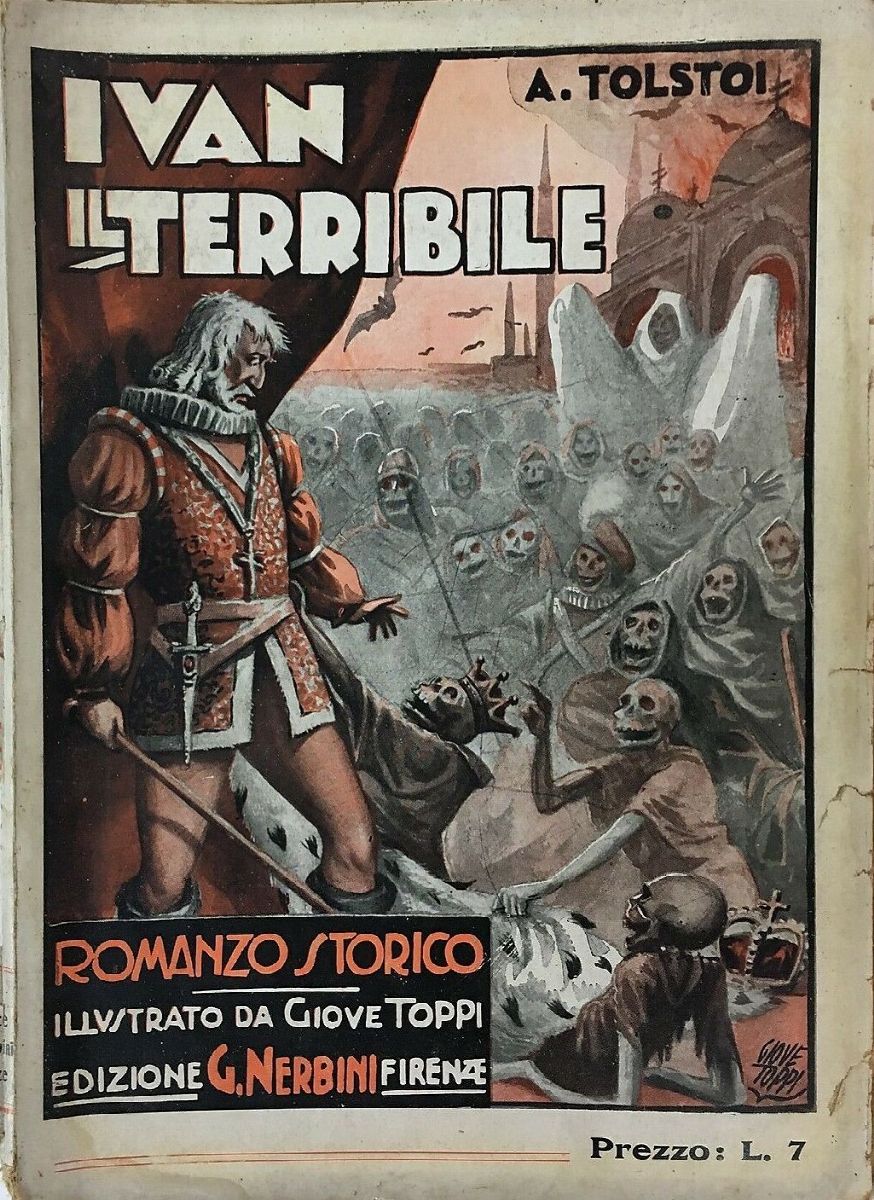 Pencil, ink and tempera on cardboard. Original cover done by Toppi Tolstoj’s “Ivan il Terribile” published by Nerbini in 1930. Signed.