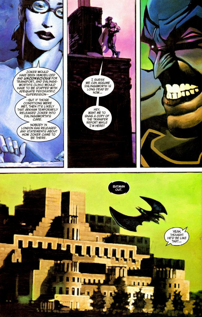 Oil on thin cardboard applied on cardboard. Original comic art done by Bolton for the “Batman/Joker: Switch” volume, published on page 14 by DC in 2003. Signed.