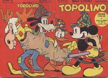 Pencil, ink and white lead on cardboard. Original cover done by Rubino for Topolino n. 33 published by Mondadori in September 1951. A museum piece.