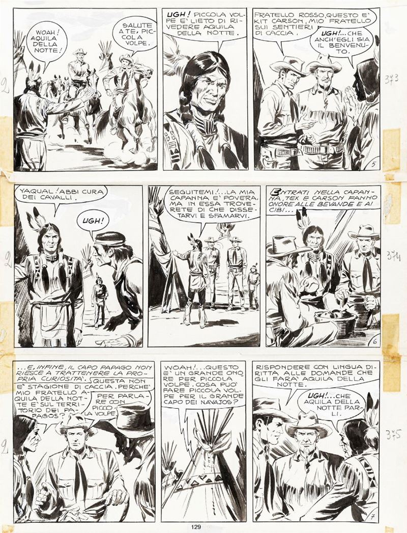 Original comic art made four hands by Galep and Muzzi for "Tymal lo stregone", published for the first time on Tex strip format in the Mexico Series n. 2, later reprinted in "Lo stregone" on Tex n. 49 on page 129 by Bonelli in 1964. On three panels.