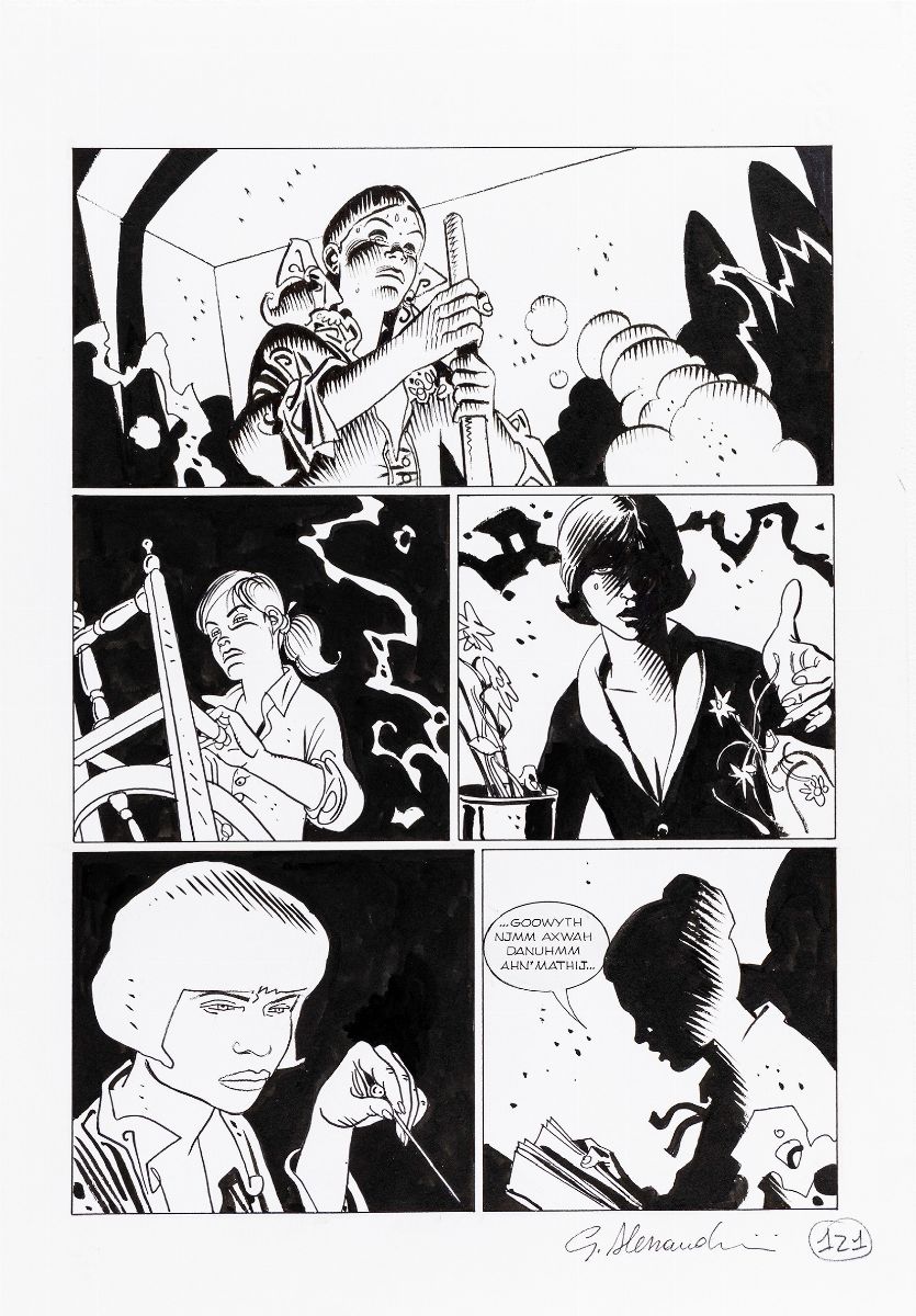 Pair of original comic arts made by Alessandrini for "Il Senza Nome", published on Dylan Dog Gigante n. 13 on pages 120 and 121 by Bonelli in 2004. Signed.