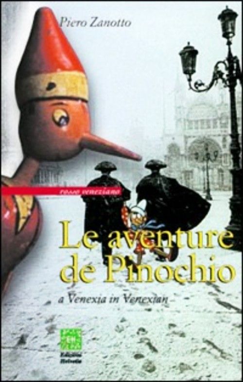 Original illustration made by Cavazzano on a famous shot by photographer Lorenzo Morucchio on the occasion of the exhibition "Pinocchio dal mondo", held in Padua between April and June 1991, published in the homonymous catalog on page 41 from the Editoriale Programma. Work used as the cover of the volume "Le aventure de Pinochio: in Venexia and in venexian by the Tuscan de Carlo Collodi" published by Helvetia in 2019. Signed by both authors.